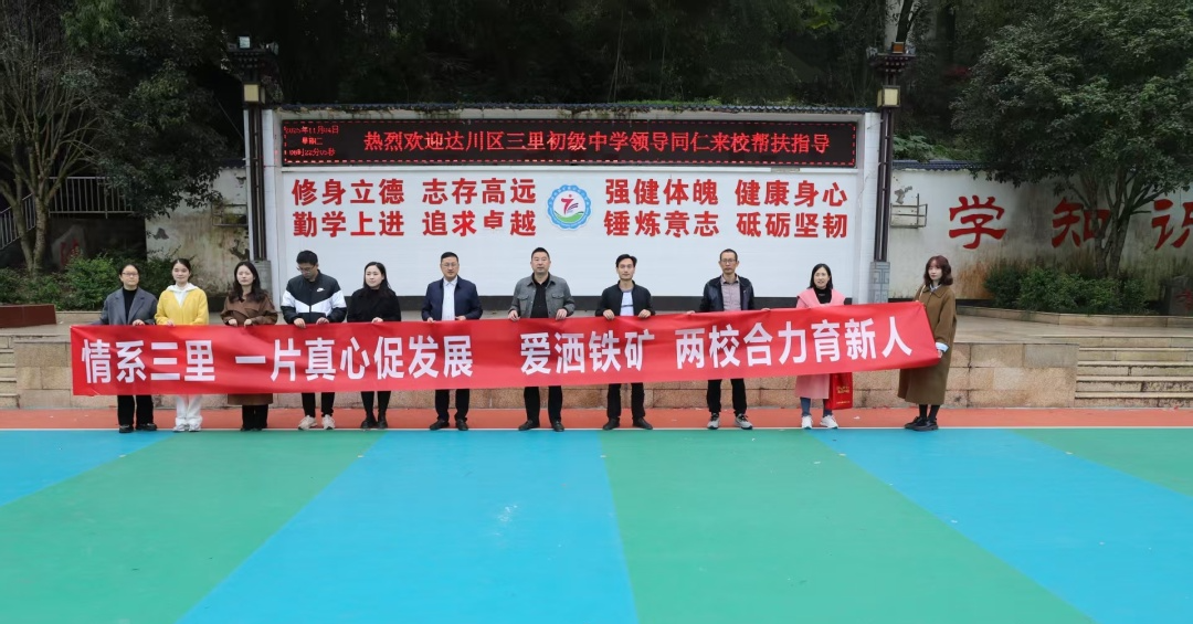 丹桂飘香沁人心,秋阳送暖情意浓。11月4日,达川区三里初级中学党总支书记余刚率队赴万源市铁矿镇学校,开展以“同心谋发展,合力育新人”为主题的教育帮扶活动。此次活动是深入贯彻落实达州市托底性帮扶工作部署、推动城乡教育均衡发展的生动实践,也是两校继2024年结对交流以来深化合作、共育新篇的重要举措。