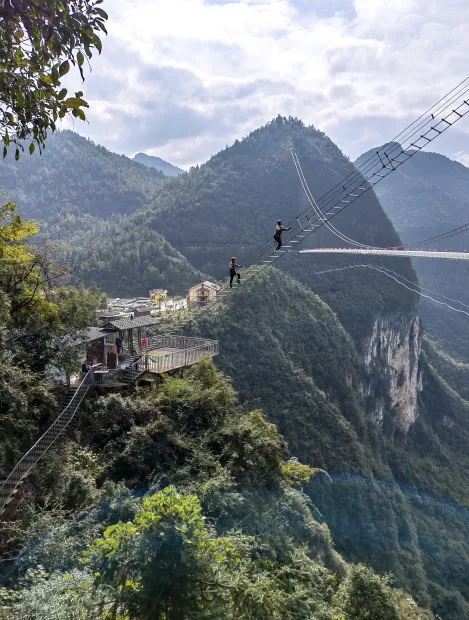 漫步桃溪谷畔,看幻彩溪流穿谷而过;登高罗盘顶,赏彩林绵延如霞。老师们沿途还邂逅了川东土家族薅草锣鼓的互动展演,这一入选国家级非物质文化遗产的民间艺术,如今已成为峡谷里鲜活的文化风景 。大家时而驻足拍照定格秋色,时而与非遗传承人交流,在山水与文化的交融中放松身心。