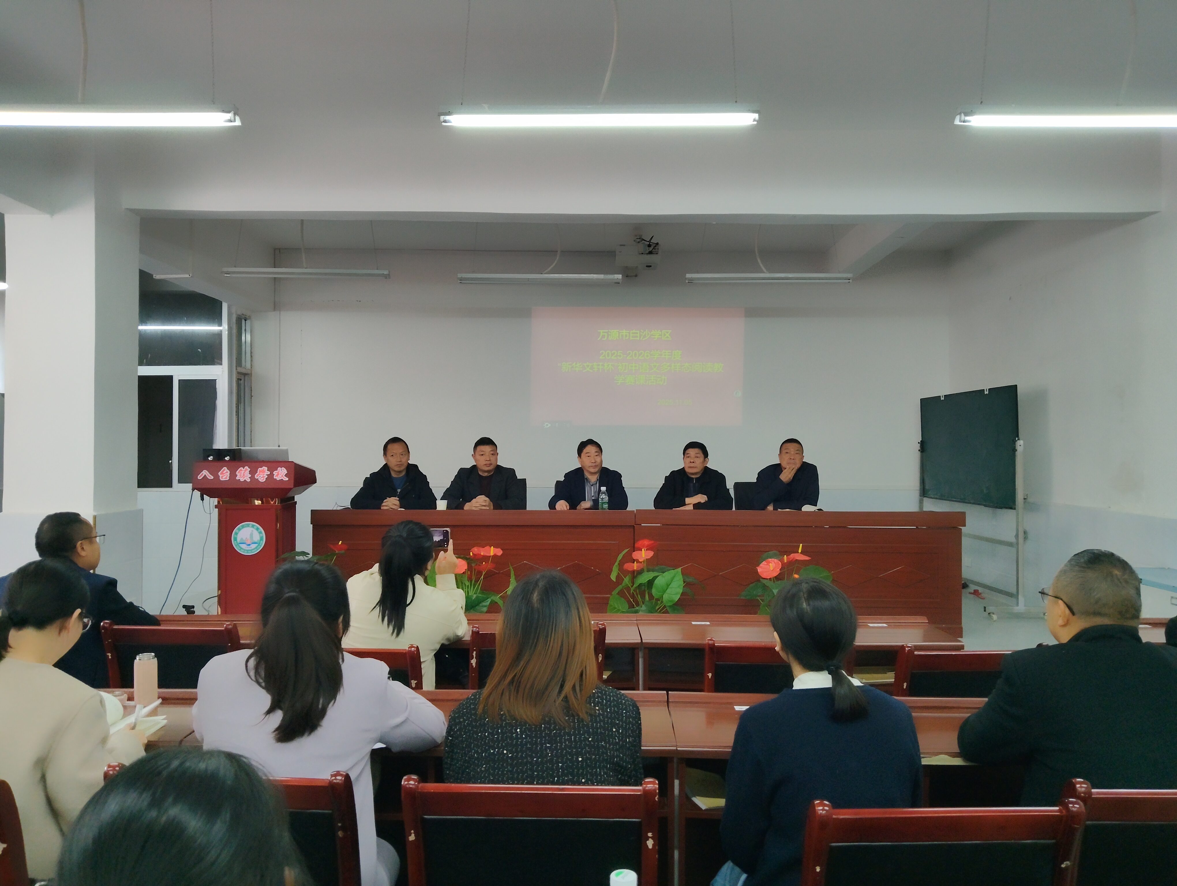 为开阔教师眼界,提升初中语文教学质量,促进教师专业发展,搭建教师交流学习、展示风采的平台,11 月 5 日,白沙学区2025—2026学年度 “新华文轩杯” 初中语文赛课活动在八台镇学校举行。白沙学区及所有参赛教师参加了此次活动。