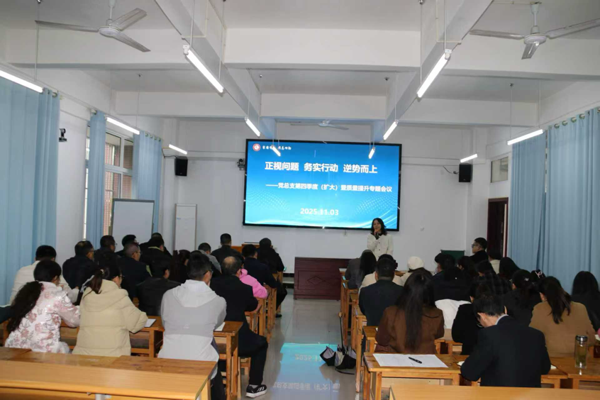 学校党总支书记余华勇带领全体参会人员学习贯彻党的二十届四中全会精神,围绕“统筹教育强国、科技强国、人才强国建设”要求,结合学校发展实际作主题讲话。他以《正视问题,务实行动,逆势而上》为题,深入剖析学校当前存在的短板弱项,向与会人员提出明确要求:一是坚守质量核心生命线,强化责任担当,坚定“事在人为、干则必成”的信念;二是勇于自我革命,直面问题不回避,深入师生听民意、解难题;三是聚焦目标全力冲刺,以“学为中心”深化教学改革,力求实效突破;四是坚持终身学习,化挑战为机遇,全力提升教学质量,办好人民满意的教育。