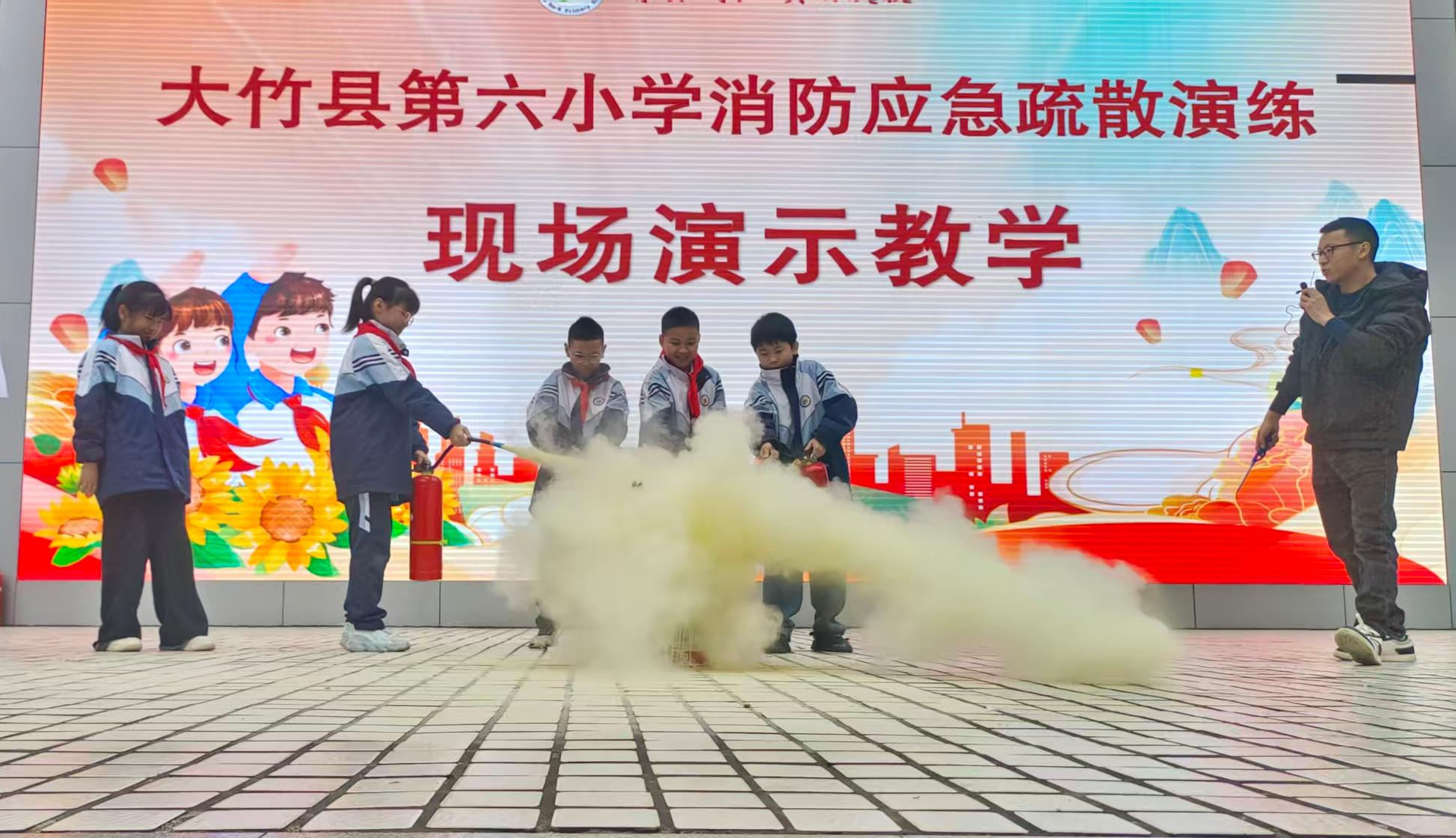 消防“实战”进校园 安全“种子”播心田——记大竹县第六小学消防应急疏散演练
