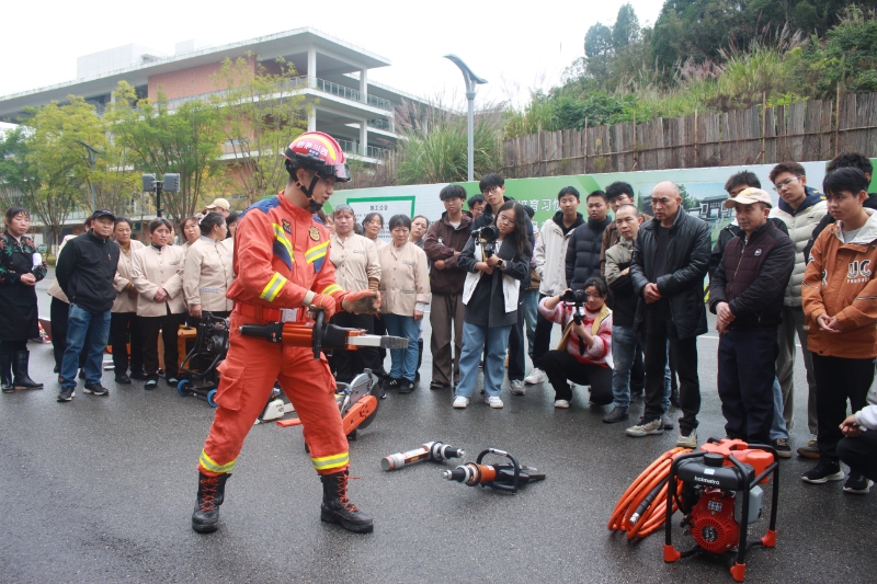活动中,消防宣传人员结合校园火灾典型案例,向在场的同学们详细介绍了火灾的危险性、发生的原因及预防火灾的重要性,重点讲述了如何正确拨打火警电话、遇到火灾如何选择正确的逃生方式和应对初期火灾的扑救方法。随后为师生详细讲解展示了液压剖拆工具组、手抬机动泵、干粉灭火器、水枪水带、室内室外消火栓等消防器材的应用场景、性能参数、使用步骤及操作注意事项,并组织学生动手进行油桶灭火实操,让学生在实践中掌握“提、拔、握、压”的正确操作方式,参与体验处置模拟火灾现场,进一步提高消防安全常识和技能,达到了良好宣传效果。