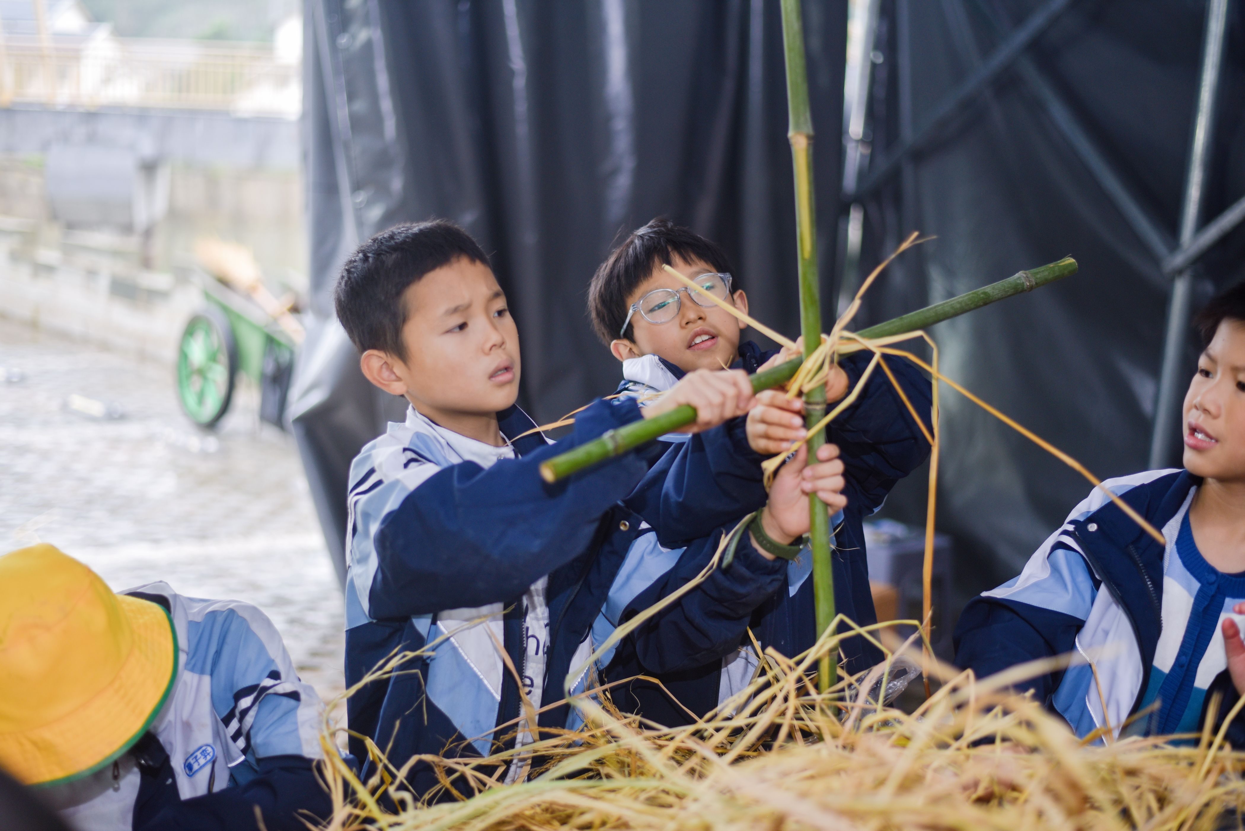 次日的乡土研学之旅,让孩子们走进自然、触摸传统。在广子村糯稻种植基地,学子们化身农耕小达人,在导师指导下扎制稻草人"守护"庄稼,亲身感受农耕劳作的智慧与艰辛,深刻体会"一粥一饭,当思来处不易"的道理。