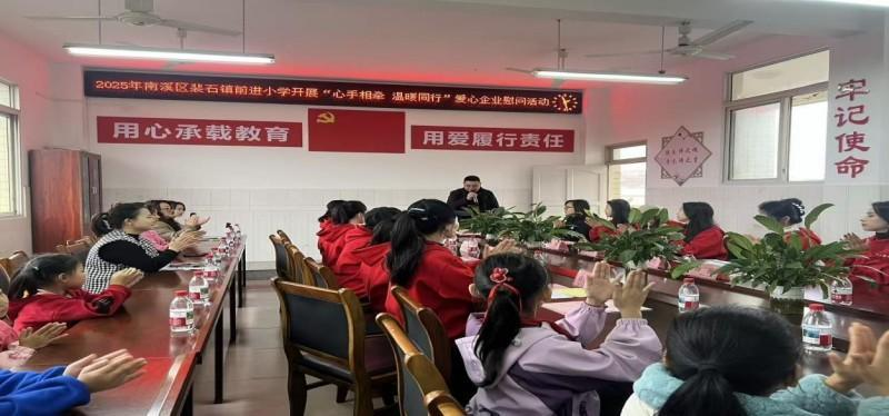 11月7日,裴石前进小学在裴石党委政府的牵头组织下,与南溪区欢乐颂娱乐有限公司、南溪区合众影城、四川陈塘关教育咨询有限公司等12家爱心企业举办了“心手相牵,温暖同行”关爱留守儿童爱心捐赠活动。