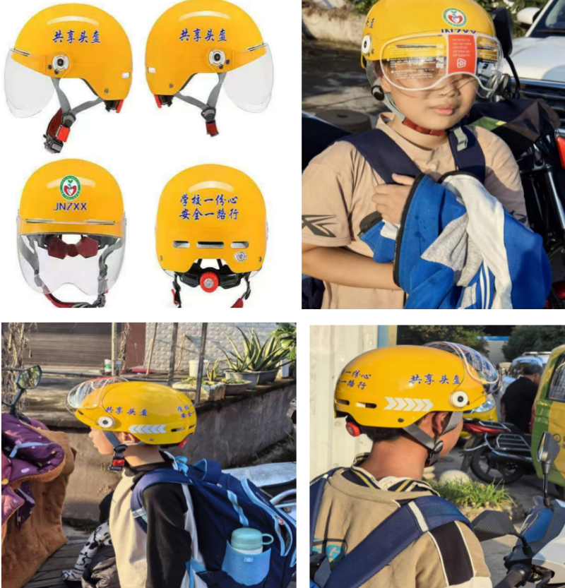 针对部分学生及家长偶尔忘记携带头盔的情况,学校秉持“安全为先、便民利民”原则,创新推出“共享头盔”服务。学校在校园门口安保室设置共享头盔存放点,统一购置一批符合国家安全标准的头盔,配备消毒用品,并安排专人管理。学生及家长若临时未携带头盔,可凭有效证件等进行登记后免费借用,使用后及时归还。管理人员定期对头盔进行清洁消毒,确保卫生安全。共享头盔服务的推行,有效解决了忘戴头盔的应急需求,进一步补齐了交通安全防护短板。