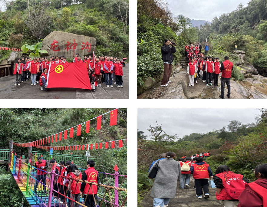 时值金秋,天朗气清。2025年11月12日,秋假第一天,为充分利用屏山县新市镇独特的自然与文化遗产资源,丰富学生假期生活,提升综合素养,在新市镇九年一贯制学校党支部的领导下,组织50余名师生前往国家地质公园西部龙神沟,开展了为期一天的“探秘地质奇观,感悟人文自然”龙神沟地质科普研学活动。本次活动旨在引导青少年深入家乡腹地,完成一场融地质探索、生态观察与乡土文化浸润于一体的深度研学之旅。