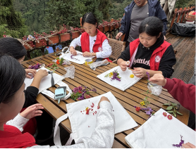 紧随其后的植物拓印体验,则是一场与秋日自然的静谧对话。秋季的植物色彩斑斓,叶片形态和色素沉积达到顶峰,是进行植物拓印创作的黄金季节。学生们在认识龙神沟特色植物的同时,采集不同颜色和形状的落叶,利用锤子与布料,将秋日的绚烂永恒定格在画布上。这既是一次生动的植物学与各种植物色素的知识应用,也是一次极具季节特色的艺术创作。