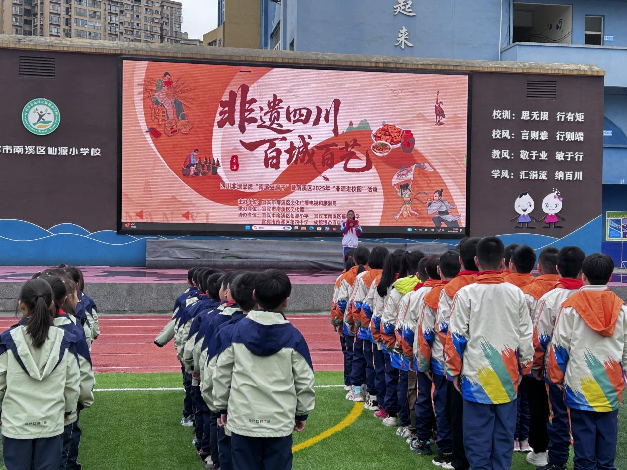 11月17日,“非遗四川·百城百艺”四川非遗品牌“南溪豆腐干”暨南溪区2025年“非遗进校园”系列活动,在宜宾市南溪区仙源小学盛大启幕,全校师生满怀热忱,共赴这场精彩纷呈的文化之约。