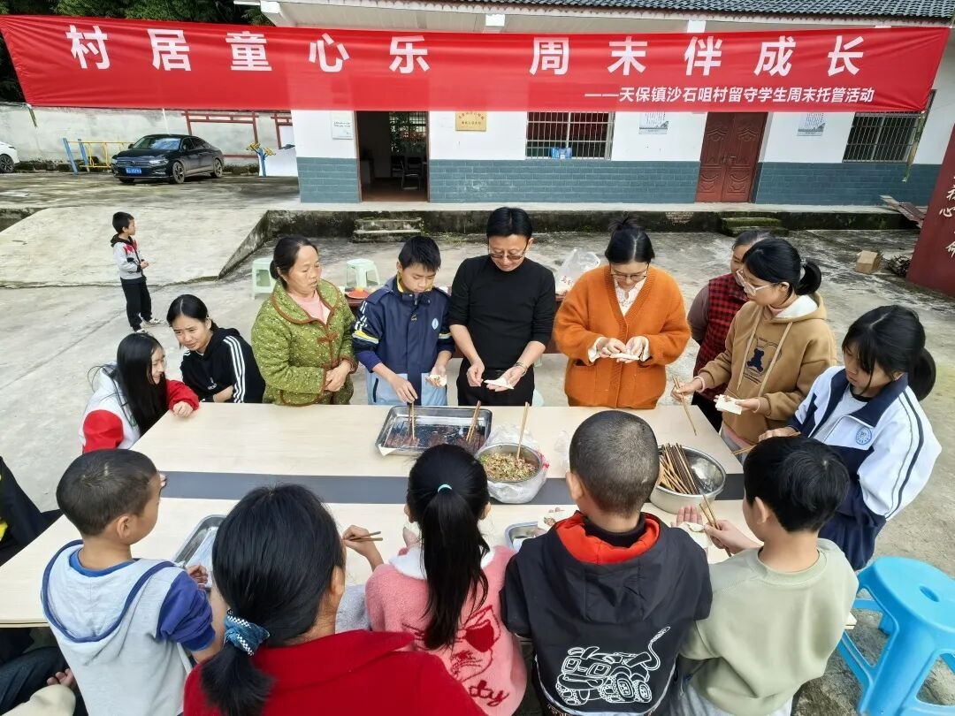 天保小学组织教师志愿者走进沙石咀村,带领孩子们感受剪纸技艺和竖笛的魅力,一起包饺子享受劳动的喜悦。