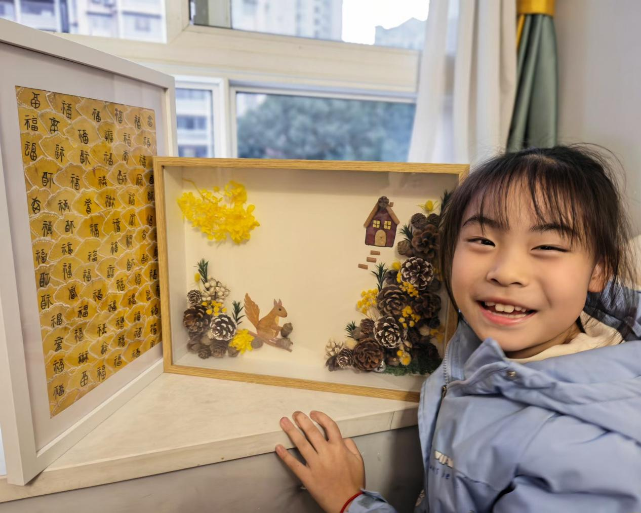 落叶有情,创意无限。同学们带着精心制作的贴画回到班级,色彩斑斓的作品摆满了展示区:灵动的蝴蝶、可爱的小兔、秋日的森林……每一幅都充满童真。相信这一片片承载着创意与美好的秋叶,将成为孩子们童年里一段温暖而珍贵的回忆,也将激励他们在未来的生活中,继续发现美、创造美。(严洪)