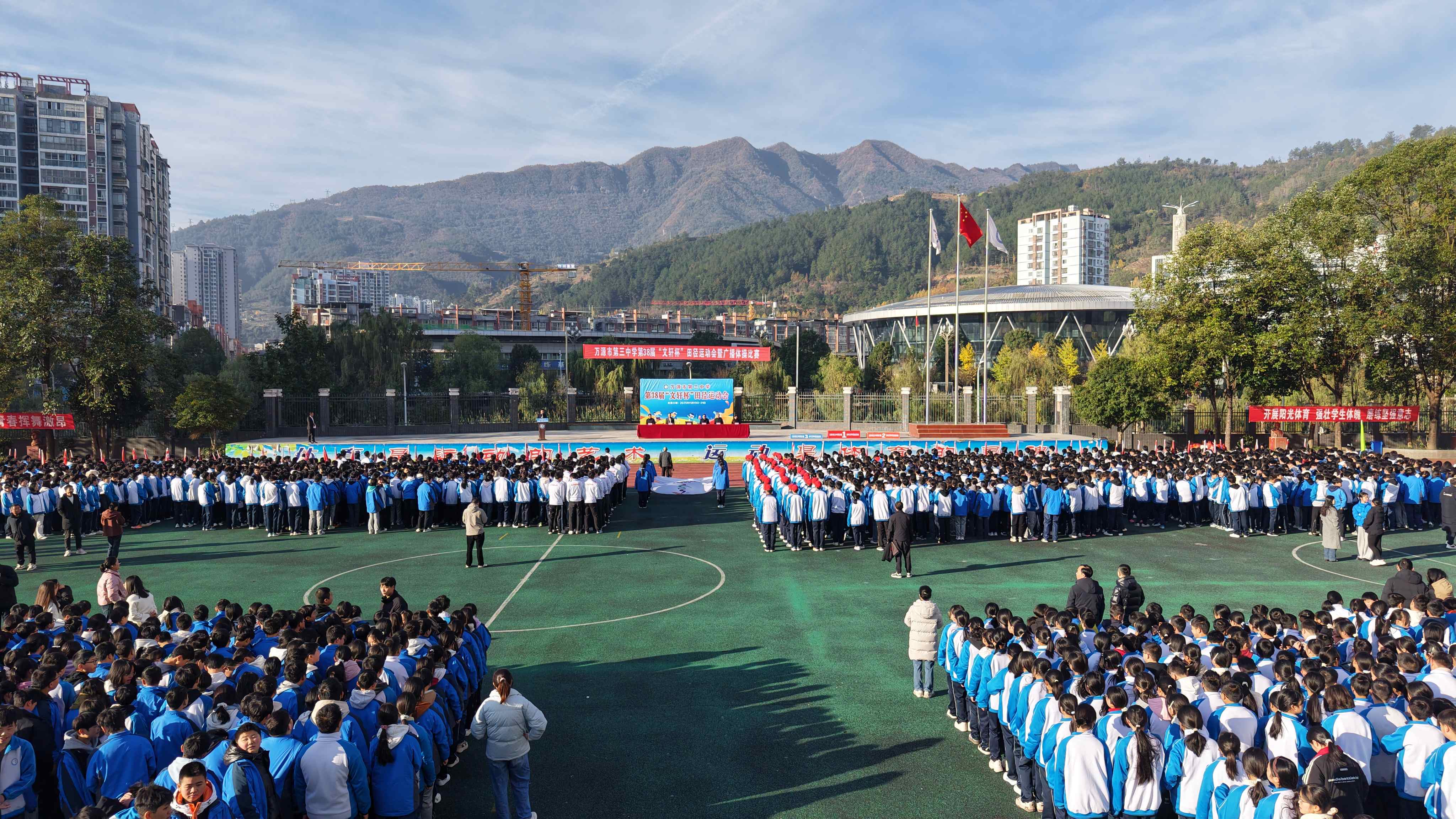 万三中第38届“文轩杯”田径运动会暨广播体操比赛开幕