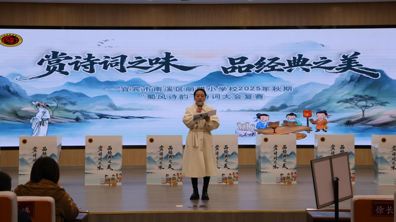 为传承中华优秀传统文化,提升学生语文学科核心素养,2025年11月19日,宜宾市南溪区丽雅小学校举办“赏诗词之味,品经典之美”“蜀风诗韵”诗词大会现场总决赛。