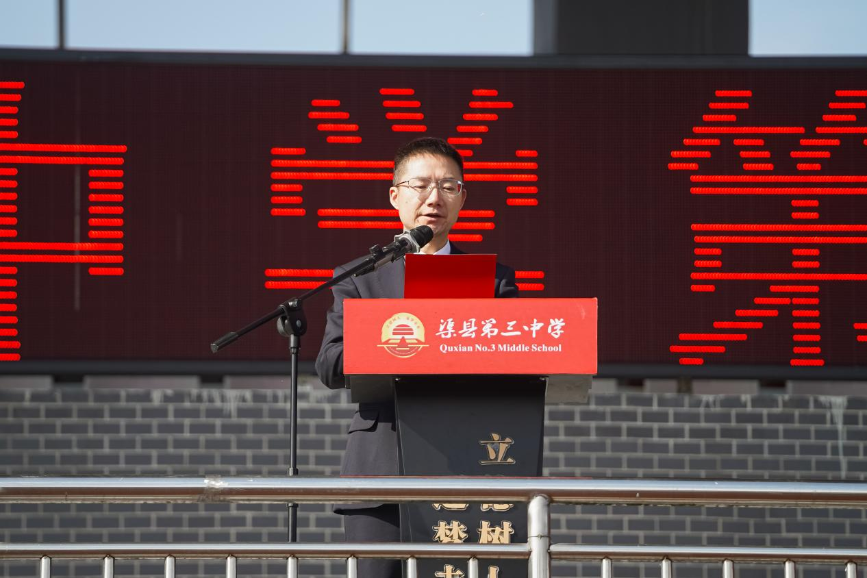 入场仪式后,渠县第三中学党委副书记、校长熊富强随即发表致辞。他首先向运动会的顺利开幕致以热烈祝贺,向辛勤付出的教练员、工作人员及裁判员表达诚挚敬意,并向全体同学寄予深切期望:以“不破楼兰终不还”的决心驰骋赛场,以“直挂云帆济沧海”的豪情超越自我,在竞技中书写青春华章。