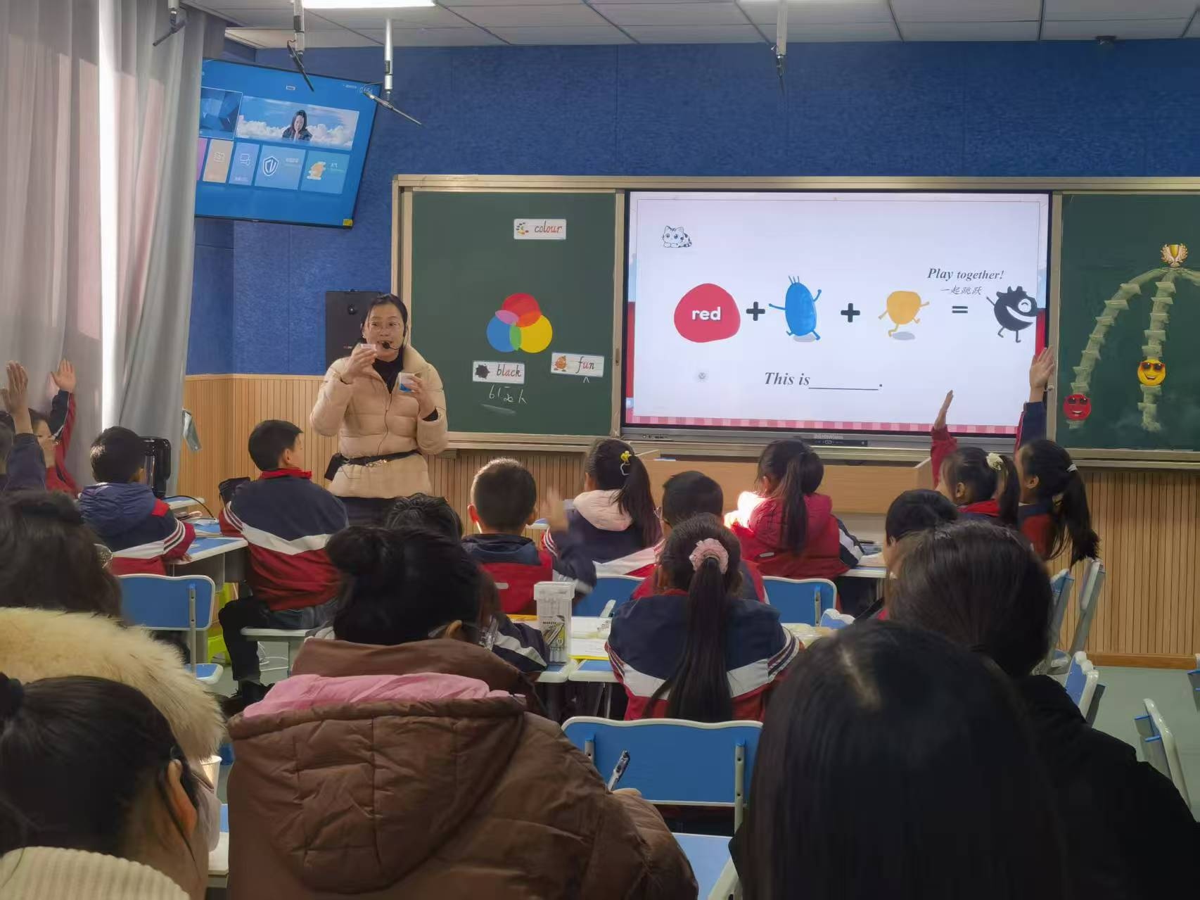活动以课例示范拉开序幕,谷兴华老师执教的三年级课例《It’s a colourful world.》,通过问题链的方式搭建学习平台,同时创设真实情景为学生提供学习的脚手架,实现“词汇认知”到“语言运用”的转化。课例中“观察魔法现象—思考色彩变化—表达发现”的环节,潜移默化培养了学生的观察能力与逻辑表达能力,真正实现“知识学习”与“素养提升”的双重目标。陈姝老师执教的四年级课例《Yes, I can.》,以“分享日常小事”为载体,“以终为始”的任务型教学引导学生大胆表达,实现了知识传递与情感共鸣,契合了新课标语言运用能力与品质的培养要求。课后,执教教师与官渡小学教师围绕“游戏时长把控”“低年级口语评价”等实际问题展开研讨,高效碰撞教研思路。
