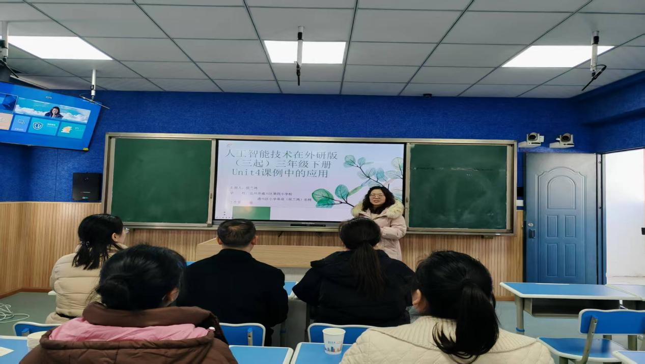 工作室领衔人侯兰鸿老师聚焦技术赋能,演示AI在六年级英语课例中的应用(如生成趣味情境、智能检测单词);王珊珊老师针对资源开发,传授用彩纸、旧杂志制作教具、改编英文儿歌的实用方法;邓娇老师围绕课标落地,结合课文解读教材逻辑与教学目标转化路径,为参会教师提供可直接可用的教学策略。