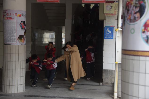 “当时心里挺紧张的,就像真的一样,”五年级(2)班的李宇涵说道,“但我们平时学过怎么逃生,大家都记得要捂好口鼻、弯腰快走,整个过程比我想象的还要有序。”