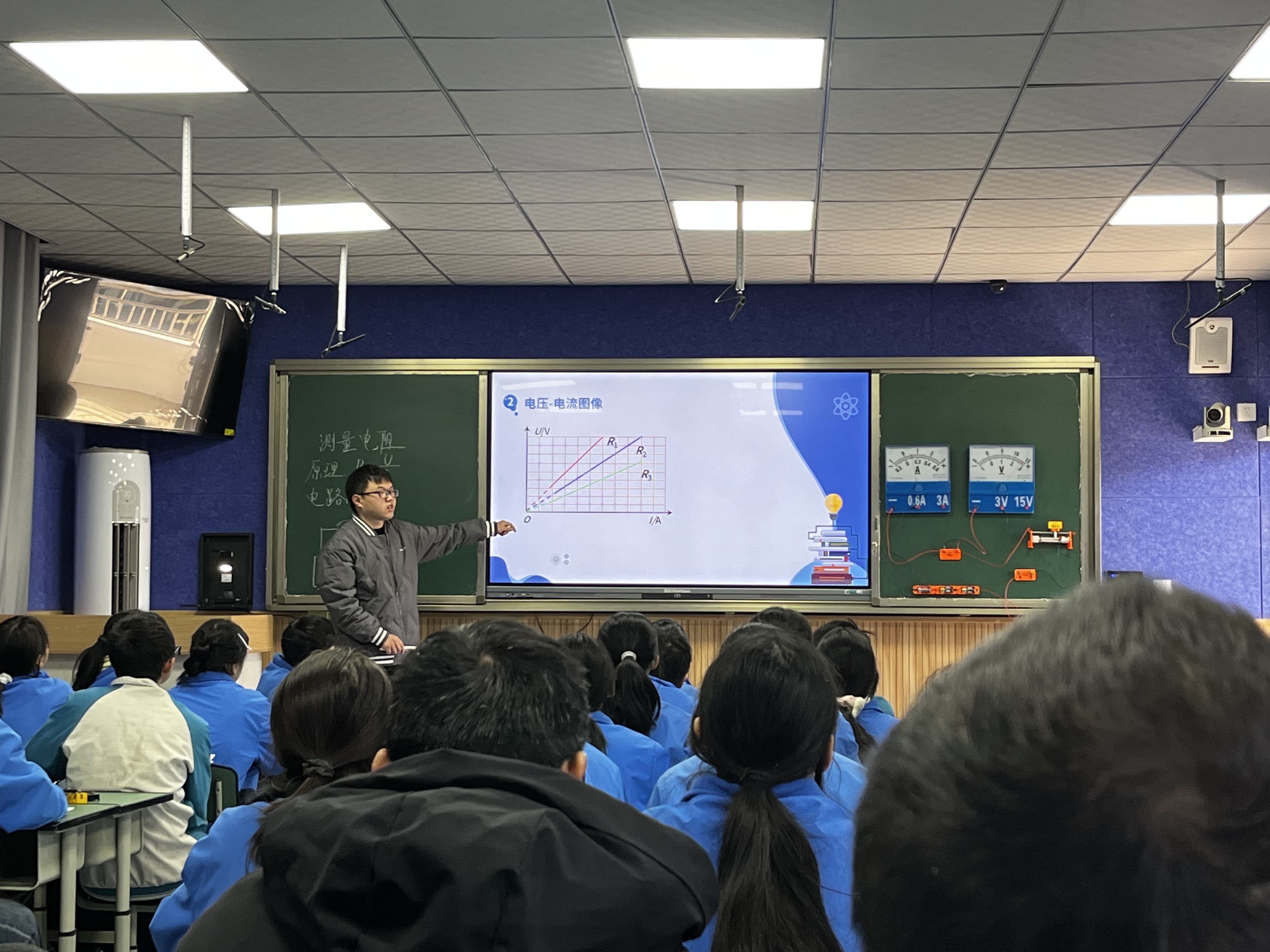 上午的录播室内,两节《测量电阻》示范课精彩开讲:竹峪中学赵冬梅老师以“问题链”驱动实验探究,让学生在动手操作中掌握伏安法测电阻的原理;草坝中学唐国淞老师则借助数字化实验工具,将抽象数据转化为直观曲线,尽显课堂创新活力。