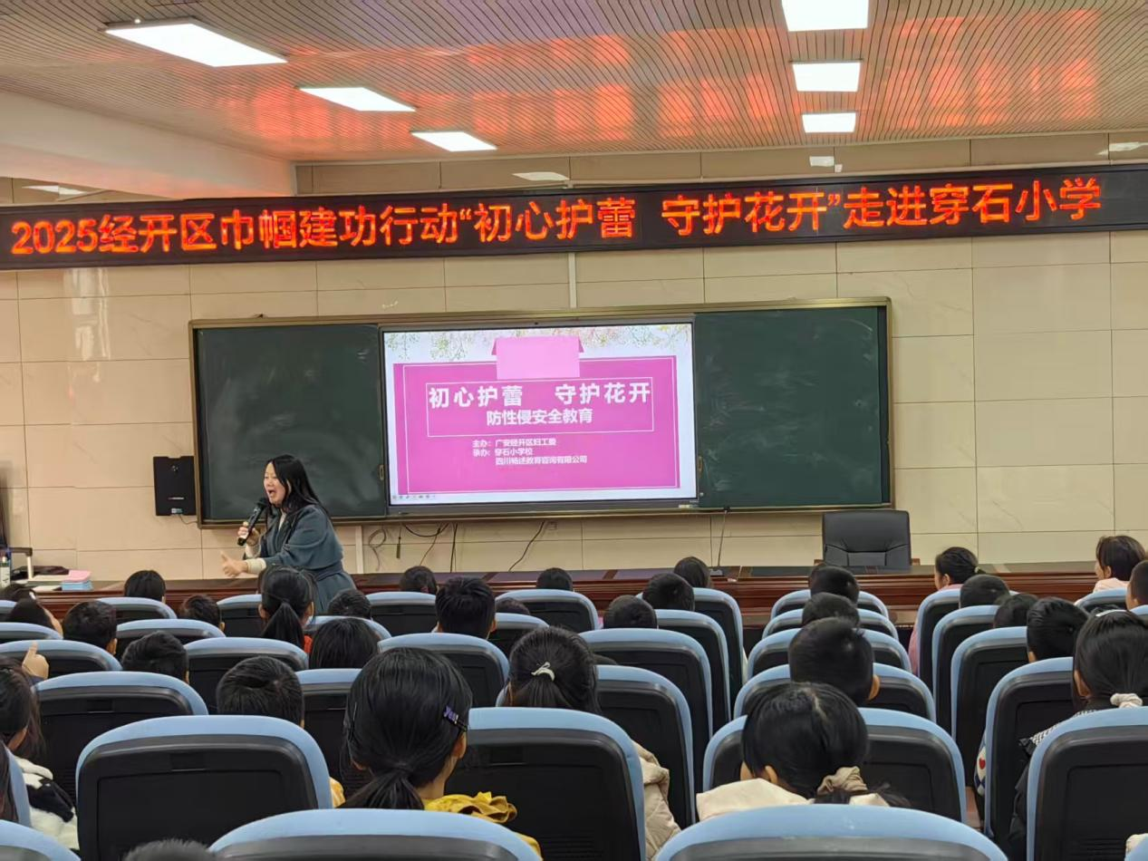 为切实加强未成年人保护工作,提升青少年自我保护意识与防范性侵害能力,11月19日,由广安经开区组织的巾帼建功行动“初心护蕾,守护花开”防性侵安全教育专题讲座走进穿石镇小学,为充满活力的青少年送上了一堂堂干货满满、温暖有力的安全必修课。
