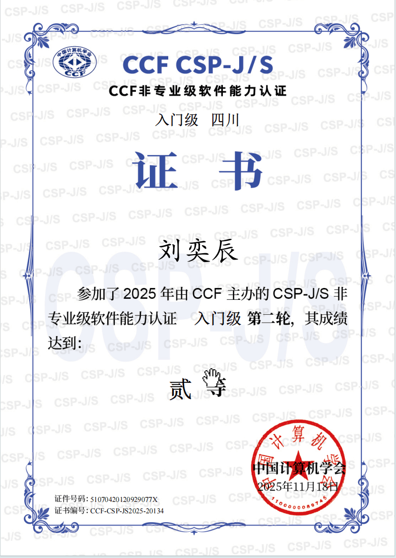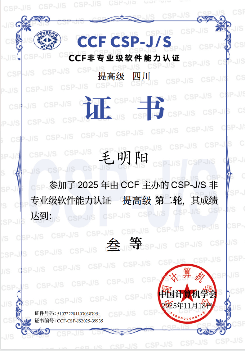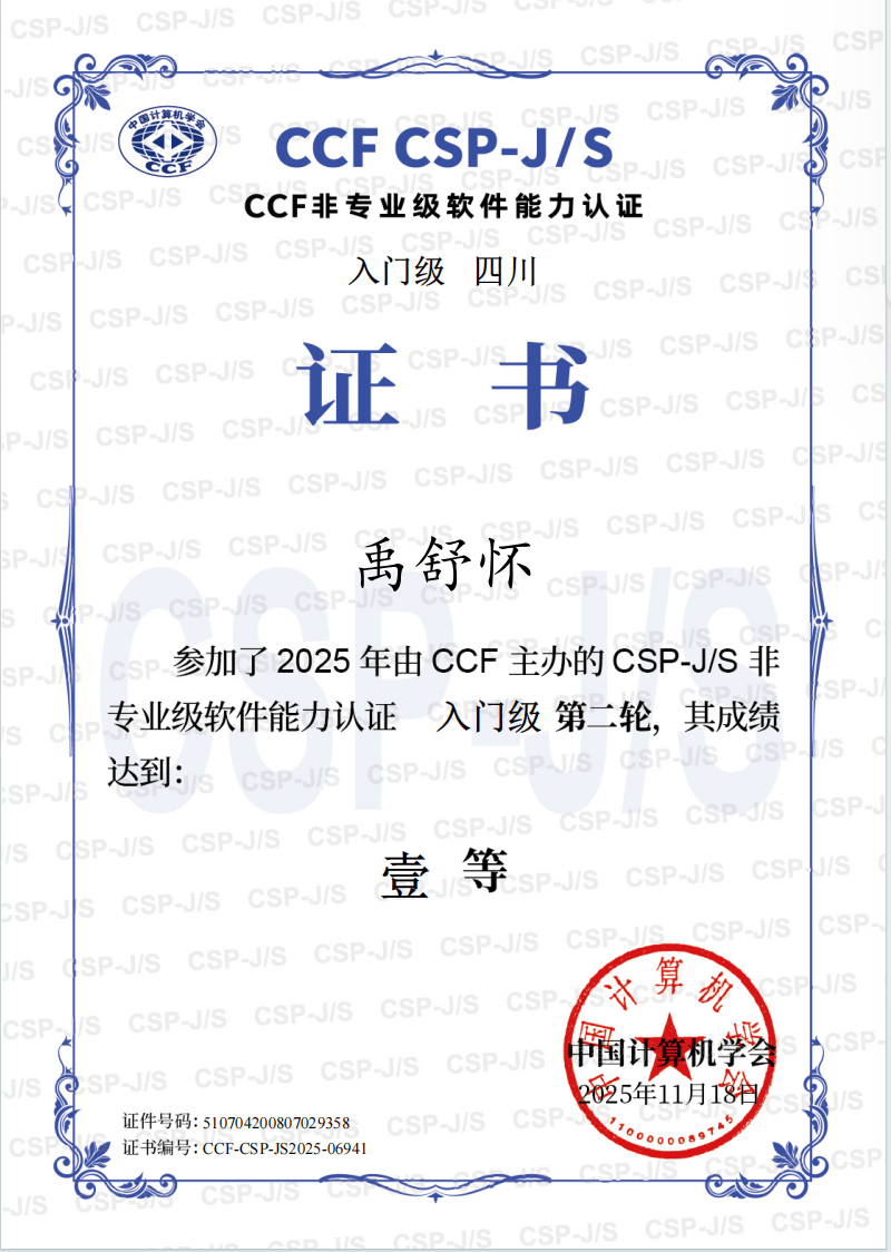 喜报 | 四川省科学城一中学子在2025年全国信息学奥林匹克联赛(CSP-J/S )复赛中斩获佳绩