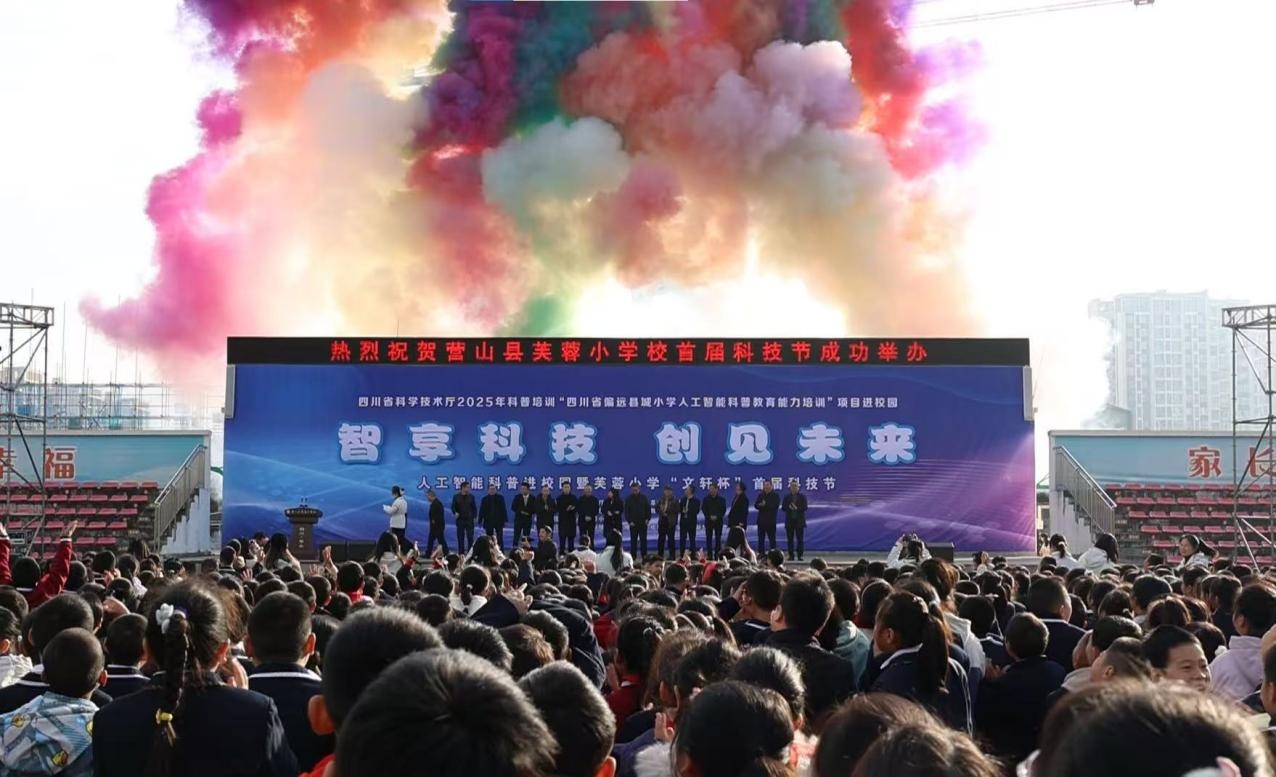11 月 19 日,“人工智能科普进校园暨芙蓉小学首届科技节” 在营山县芙蓉小学运动场举行。本次科技节以“智享科技 创见未来”为主题,通过政企校协同发力,为全校师生及家长呈现了一场集观赏性、互动性与教育性于一体的科技盛宴,让科学精神在青少年心中深深扎根。