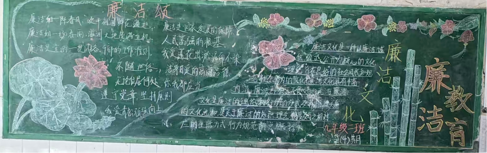 与此同时,全校各班还积极参与了廉洁教育黑板报的创作。同学们充分发挥创意,运用书法、绘画等多种形式,将廉洁文化的内涵展现得淋漓尽致,让黑板报成为传播廉洁文化的重要阵地。经过师生们的共同努力,一幅幅主题鲜明、内容丰富的黑板报在校园里绽放光彩,成为了校园文化建设的一道亮丽风景线。