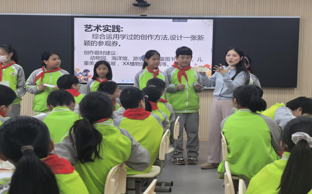 美术老师陈琳用一项充满趣味的“专属参观券设计”任务点燃了学生们的创作热情。孩子们以秋假畅想为灵感,在方寸画纸上尽情挥洒创意:有的用明快色彩勾勒自然风光,有的以童趣线条描绘活动场景,有的则融入独特符号彰显个性。一张张设计精巧的参观券,不仅成为本次公开课的“入场凭证”,更化作学生艺术素养的生动载体,充分展现了北仓路小学学子丰富的想象力与扎实的美术基础。