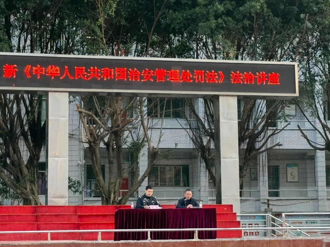 在华蜀校区,学校邀请翠屏派出所所长黄海为同学们做专题讲座,学生处主任吴志德主持。黄海所长以“青春不‘触’法,安全伴成长”为主题,为同学们带来了一场生动的“法律铠甲”必修课。