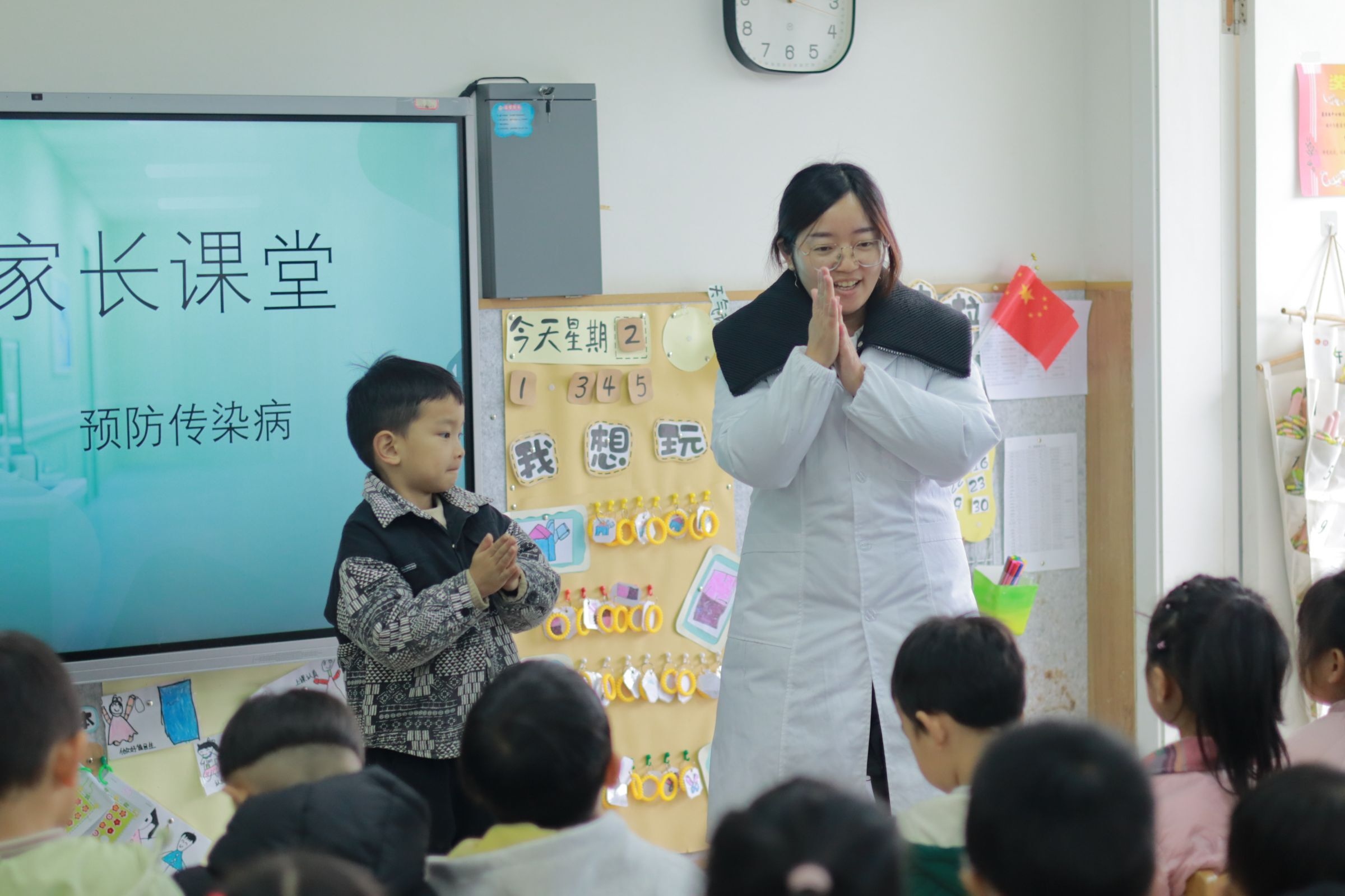 为搭建家园共育桥梁、激活家长资源,活动还同步开展“家长进课堂”。各班结合幼儿兴趣,邀请医生、手工达人、美术老师等不同职业的家长化身“特殊老师”:医生家长带来安全与传染病预防课,教孩子守护健康;手工达人带领孩子玩转创意手工,激发想象力;美术老师开设国画启蒙课,让幼儿在笔墨间感受传统艺术之美。多元课程不仅开阔幼儿眼界,更让家园互动更具体、有温度。