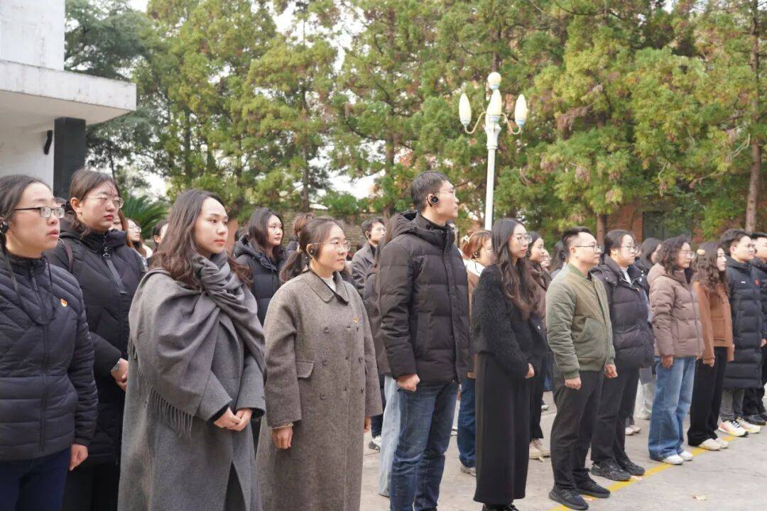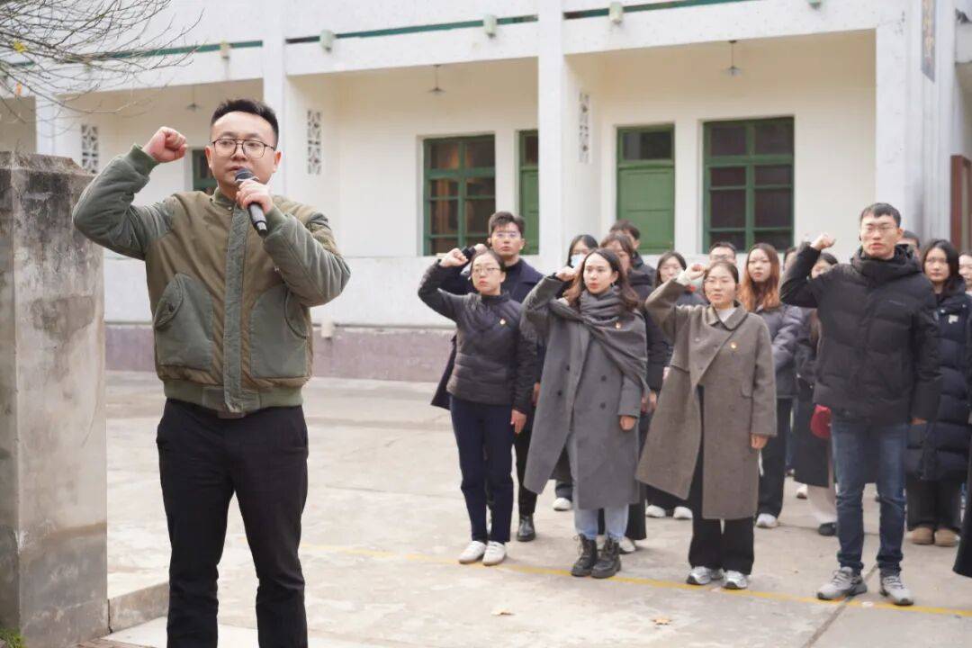老师们自发整理衣着,在铜像前肃立致敬;青年党员教师在党委办主任熊力的带领下重温入党誓词,铿锵的誓言在旧居旁回荡,也让在场教师更加坚定了党员初心、教育初心。