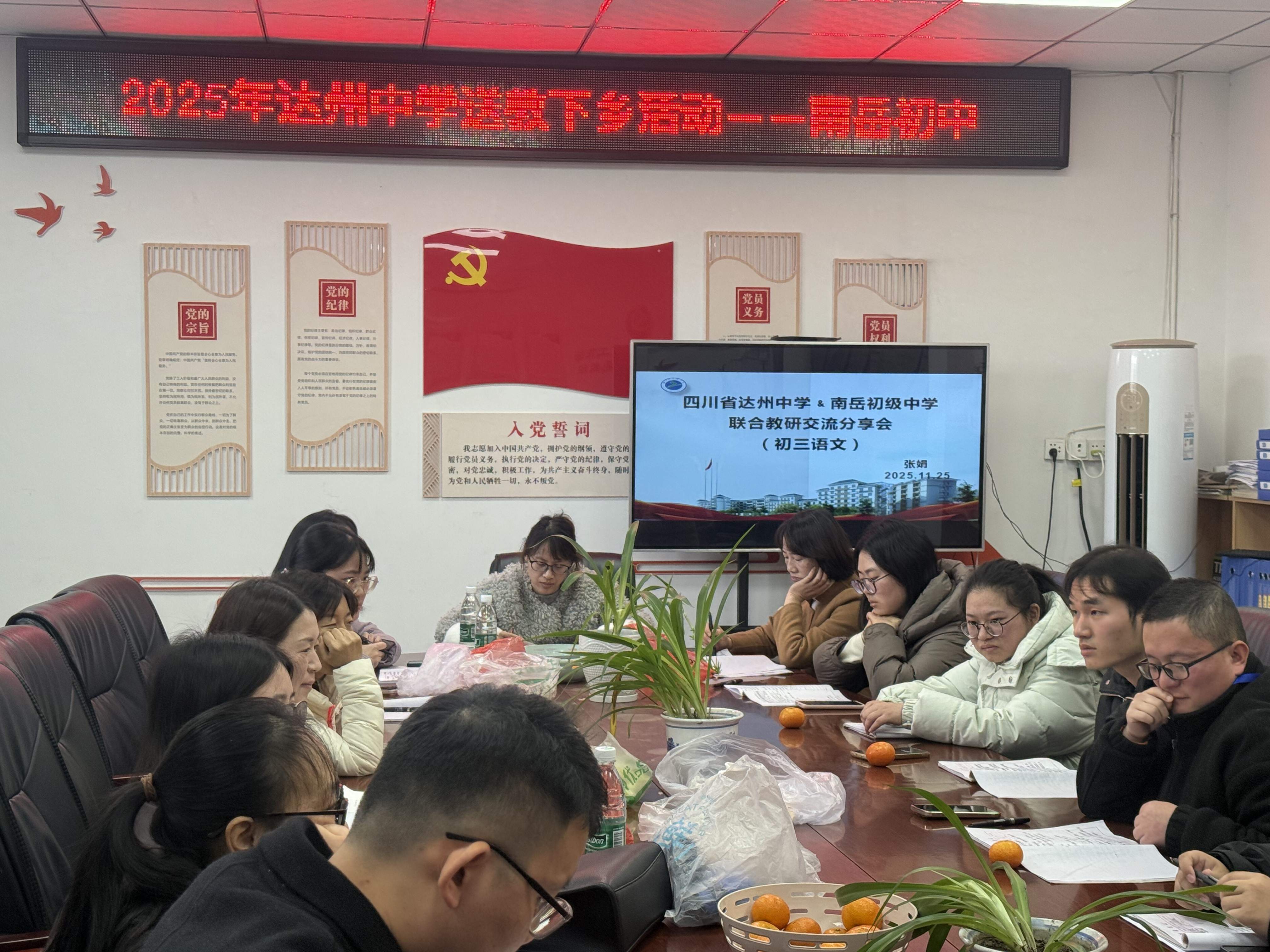 2025 年 11 月 25 日,达州中学 “送教下乡” 活动走进南岳初中,该校两位优秀语文教师分别为七年级三班、九年级一班带来《猫》与《水浒传》两堂精品展示课。南岳初中全体语文教师全程参与听课评课,在优质课堂观摩与深度研讨中共享教学智慧,共促专业成长。