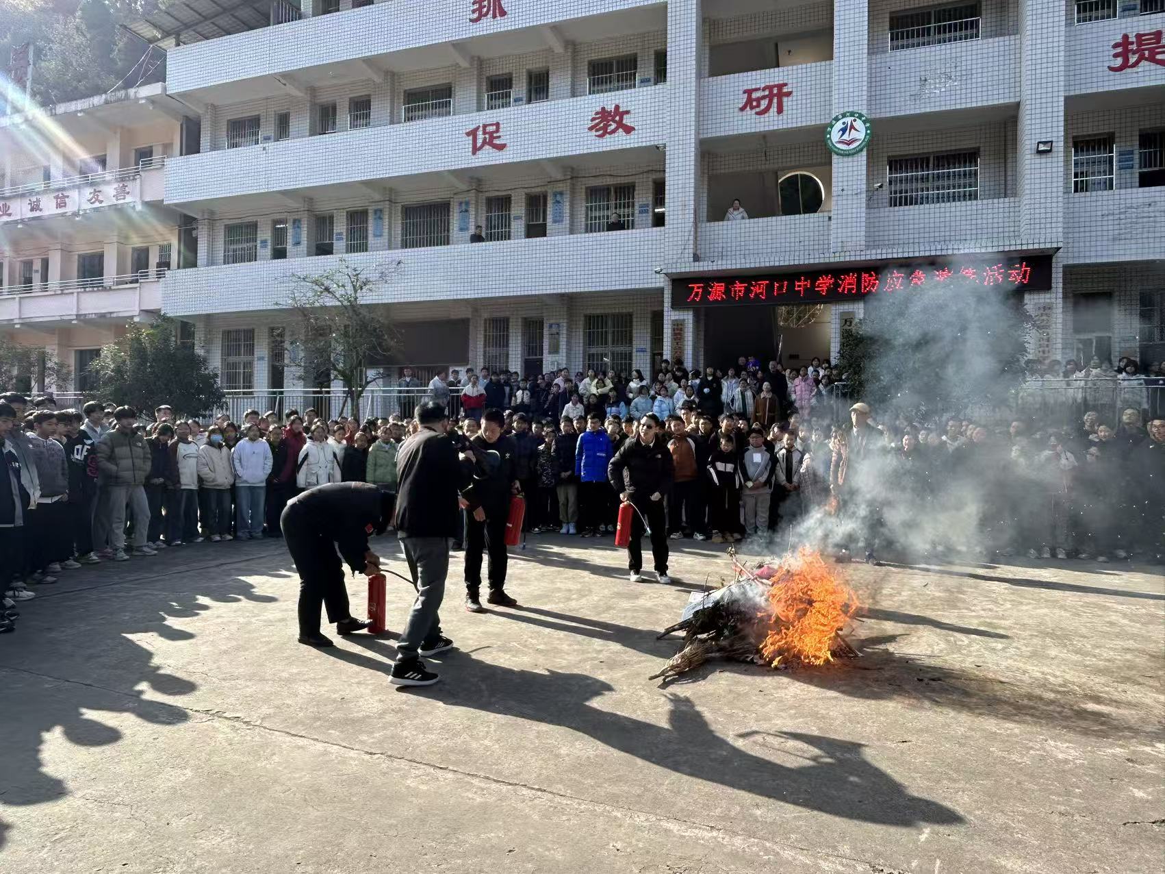 万源市河口中学开展消防应急演练活动