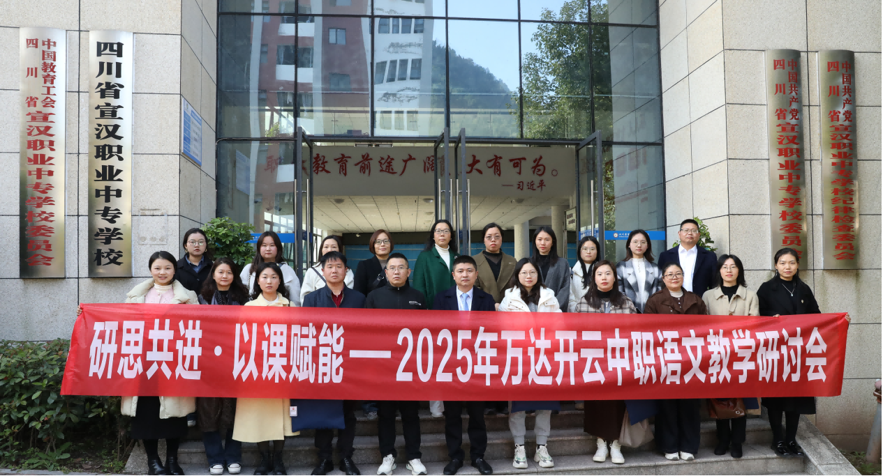 11月26日,“研思共进 以课赋能——2025年万达云开中职语文教学研讨会”在宣汉职专成功举行。来自重庆万州、开州、云阳及四川达州四地15所学校的20余位中心教研组教师,与宣汉职专近50名语文教师齐聚一堂,聚焦“提升中职语文课堂实效”核心议题,展开深度交流与智慧碰撞。