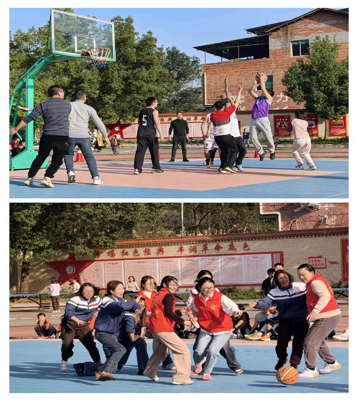 比赛过程中,运动员们精神饱满、斗志昂扬,奋力拼搏、勇争第一;啦啦队不断为队友呐喊助威,欢呼声、喝彩声、加油声此起彼伏、不绝于耳。尤其是教师篮球比赛,师生们集体观看,将整个运动会推向高潮。
