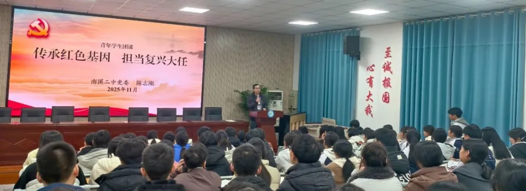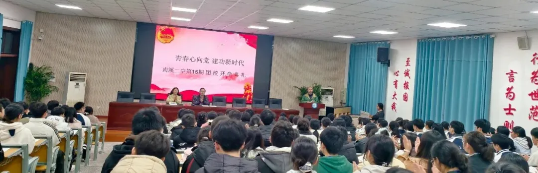 11月25日,南溪二中第十五期团校开学典礼暨首堂团课在学校大会议室举行。学校党委书记陈志刚、校团委书记雷锐与200余名入团积极分子共同参与。
