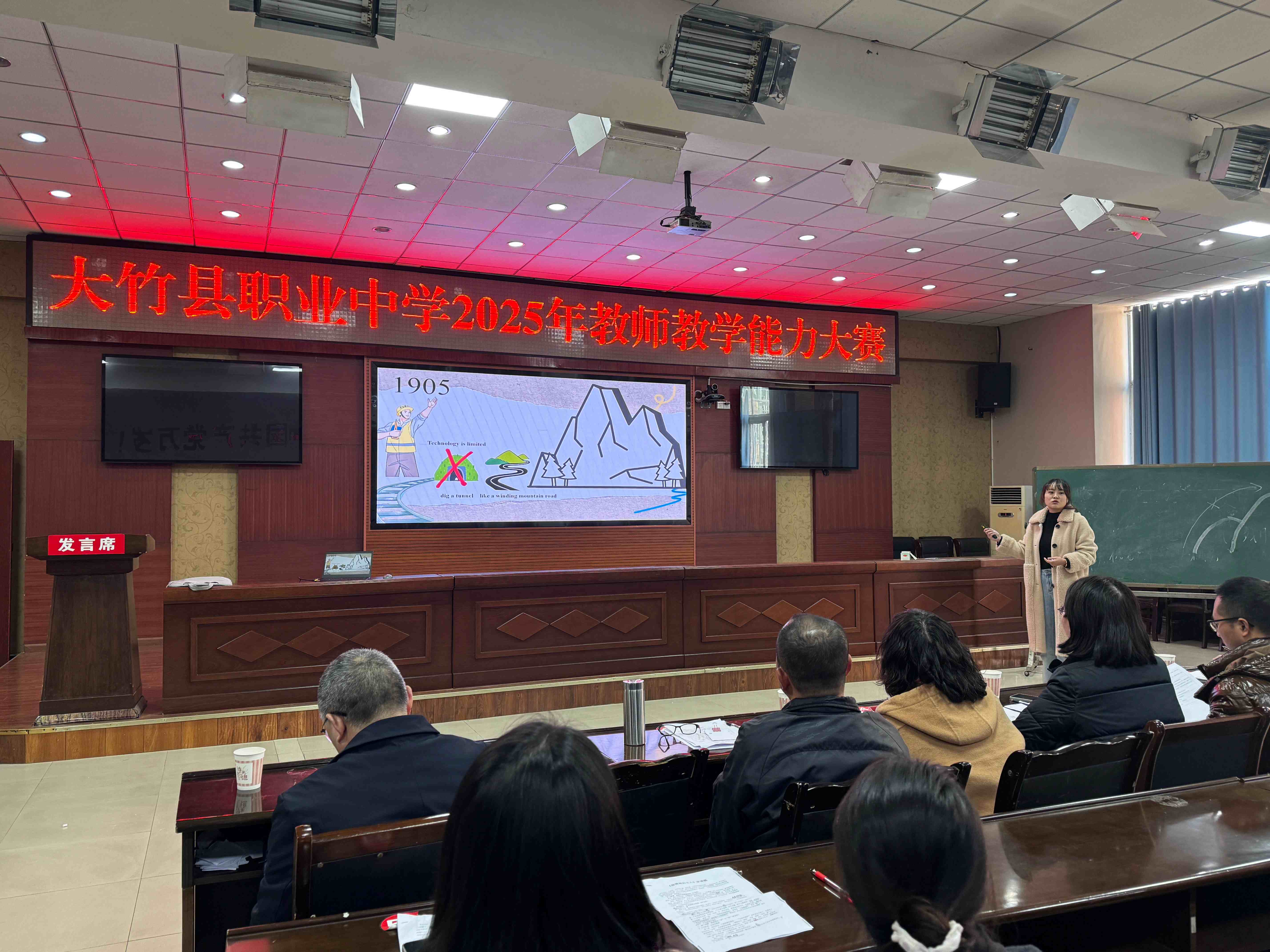 11月26日,大竹县职业中学成功举办2025—2026学年“教学大练兵”复赛活动。本次比赛以“无生上课”为主要形式,聚焦课堂教学,突出职教特色,旨在通过“以练促学、以比促教”,营造“比、学、赶、帮、超”的良好教学氛围。