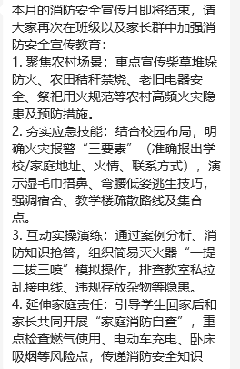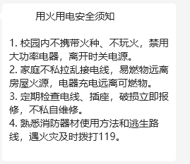 为扩大安全宣传覆盖面,让防火用电知识走进每一个家庭,草坝中学以班级为单位,通过家长群开展线上宣传活动。各班主任精心整理了防火用电安全常识、典型事故案例、应急处置方法等内容,以文字、图片、短视频等形式推送至家长群,提醒家长重视家庭防火用电安全,规范电器使用、定期检查电路,同时加强对孩子的安全教育,引导孩子远离危险行为,同时班主任及时回应家长疑问,形成家校协同发力、共筑安全防线的良好氛围。
