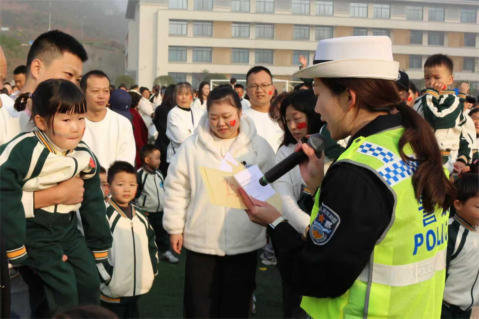为进一步提升广大幼儿园小朋友交通安全意识,充分发挥“小手拉大手”交通安全宣传力量,有效预防和减少涉幼道路交通事故。11月28日,蓬溪交管大队应仁和幼儿园园长的邀请,组织宣传交警来到仁和幼儿园亲子冬季运动会现场,结合即将到来的第十四个“122全国交通安全日”,开展“文明交通,礼行天下”的主题宣传活动。