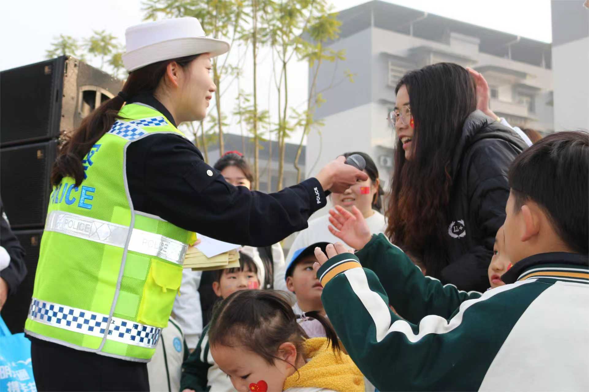 活动中,民辅警根据幼儿园小朋友的年龄和认知特点,通过摆放宣传展板、发放宣传资料、发放宣传小礼品等方式,用通俗易懂的语言,重点针对随意横过马路、在道路上追逐打闹、安全带和安全头盔的使用、汽车盲区、如何看懂信号灯、如何安全过马路等常识进行了详细讲解,并通过现场互动的形式,向在场小朋友和家长进行了一轮交通安全知识有奖竞答,小朋友和家长都踊跃回答让现场气氛异常活跃。同时,让小朋友们做好一名小小交通安全宣传员和监督员,发挥“小手拉大手”的作用,携手家长和老师们,一起遵守交通法律法规,杜绝各类交通违法行为,共同创造平安畅通的交通环境。