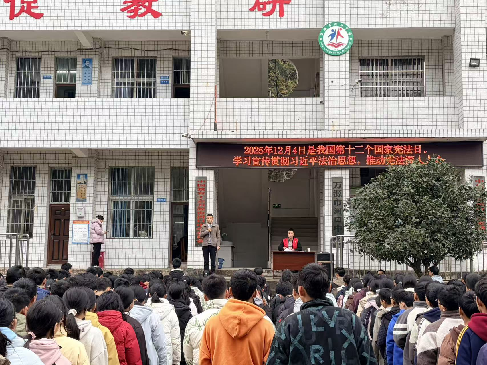 在第十二个国家宪法日到来之际,2025年12月4日,万源市河口中学携手万源市司法局河口司法所到校开展法制宣传教育活动。