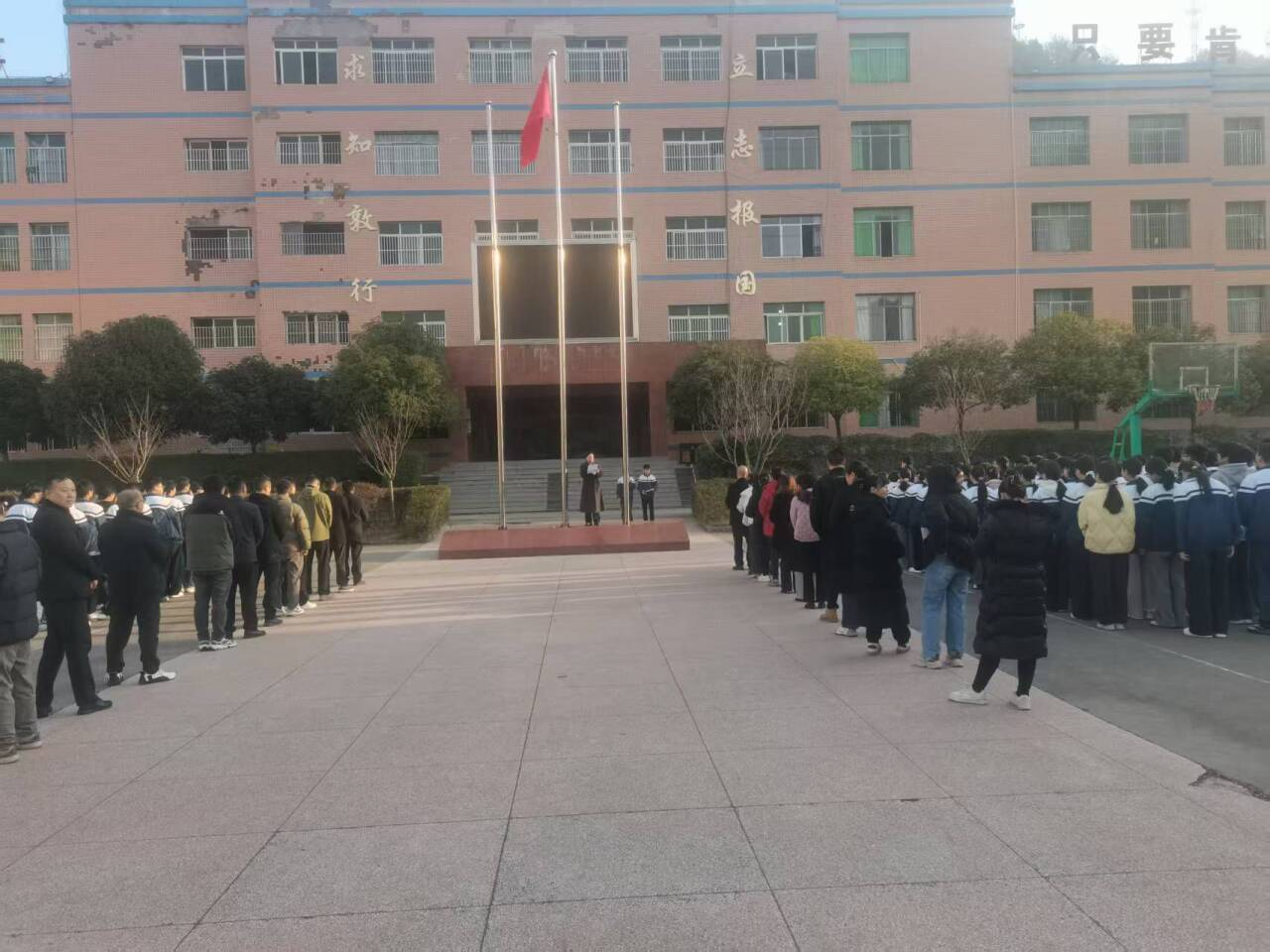 清晨的校园内,五星红旗迎着朝阳升起,全体师生肃立致敬。国旗下讲话环节,李副校长以《珍爱生命,安全同行》为题发表讲话。她结合近期典型交通案例与学生日常出行特点,用详实的数据强调了交通安全的重要性,细致拆解“红灯停、绿灯行”“过马路走斑马线”等基础规则,重点提醒同学们远离“低头行走”“马路追逐打闹”等危险行为,特别强调“一盔一带”在骑行与乘车中的防护作用。“交通规则不是束缚,而是保护生命的屏障。”李副校长的倡议铿锵有力,呼吁同学们既要做文明交通的践行者,更要当家庭中的“安全宣传员”,主动向家人、朋友宣传交通安全知识,共同营造安全、有序、和谐的道路交通环境。她铿锵有力的话语回荡在校园上空,为全体师生敲响了安全警钟,也拉开了本次主题教育活动的序幕。