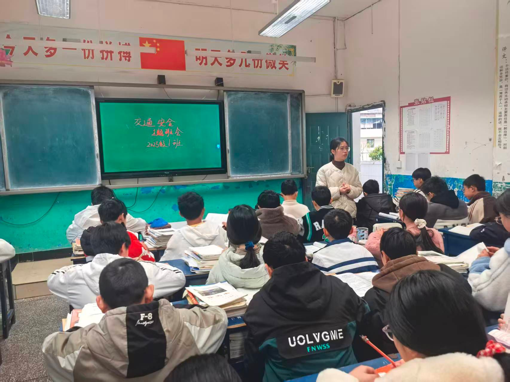 升旗仪式后,各班陆续开展交通安全主题班会,班主任精心准备,利用多媒体课件、警示教育片、真实案例剖析、交通知识竞答等多种形式,将交通安全知识生动具象地呈现给学生。在班会上,同学们观看了触目惊心的交通事故视频,深刻认识到“车祸猛于虎”的残酷现实;围绕“上下学途中如何安全行走、乘车”“遇到交通隐患如何处理”等议题展开了热烈讨论。班主任们着重强调了日常容易被忽视的安全细节,如“内轮差”盲区、远离大型车辆、不在停车场玩耍、不乘坐非法营运车辆等,引导学生从“要我安全”向“我要安全”“我会安全”转变。班会气氛热烈,同学们踊跃发言,纷纷表示要将交通安全准则铭记于心,付诸于行。