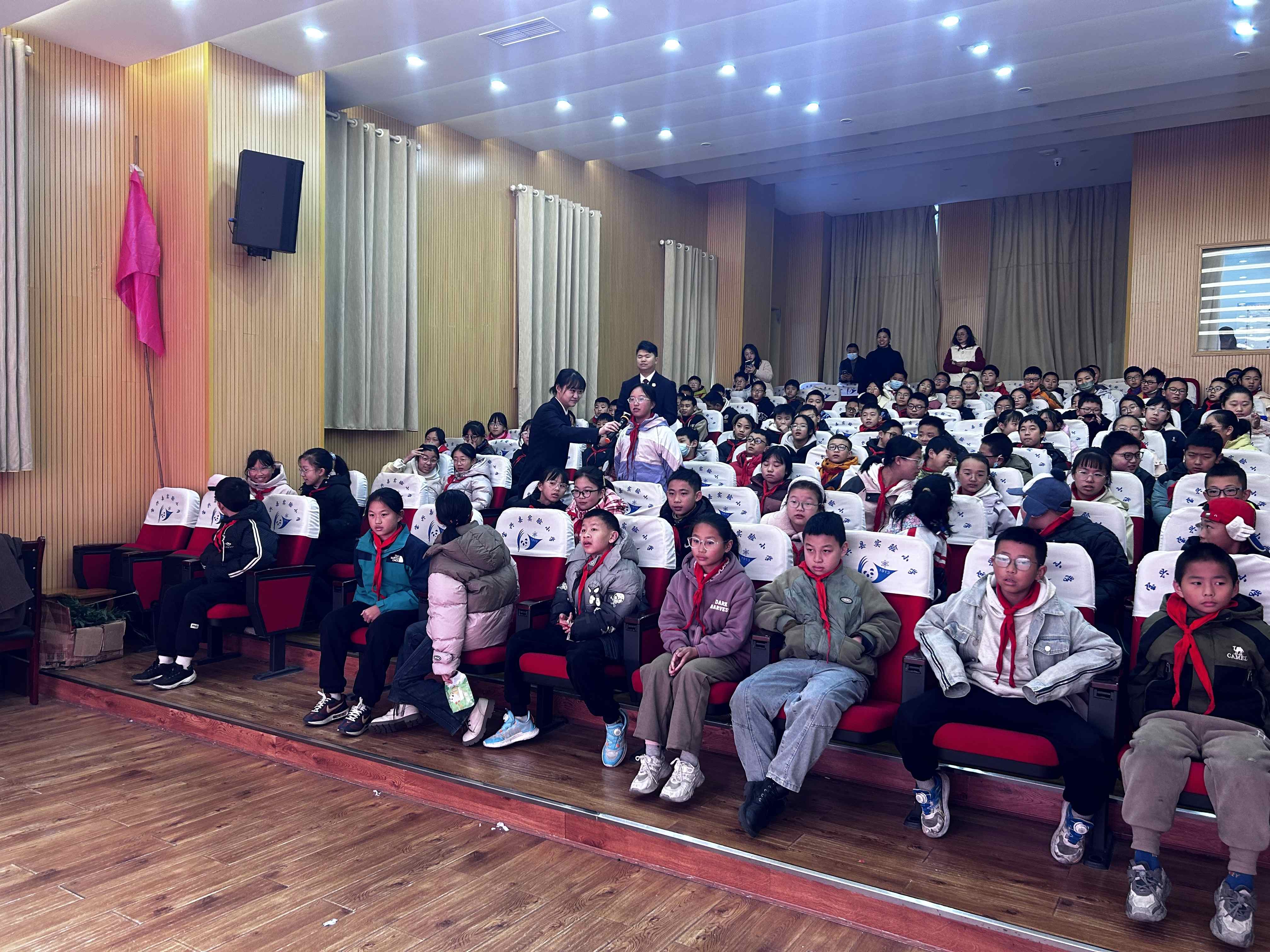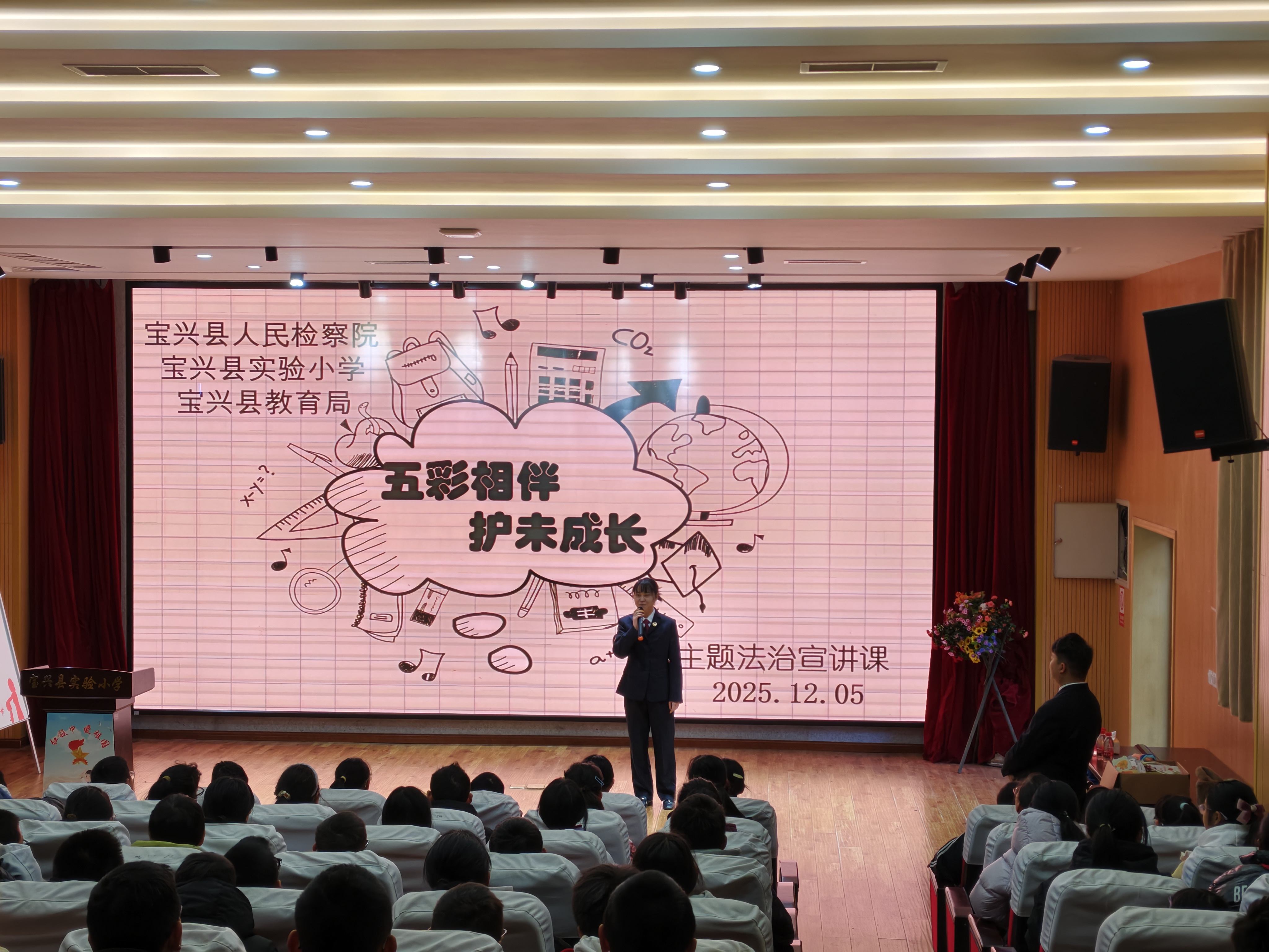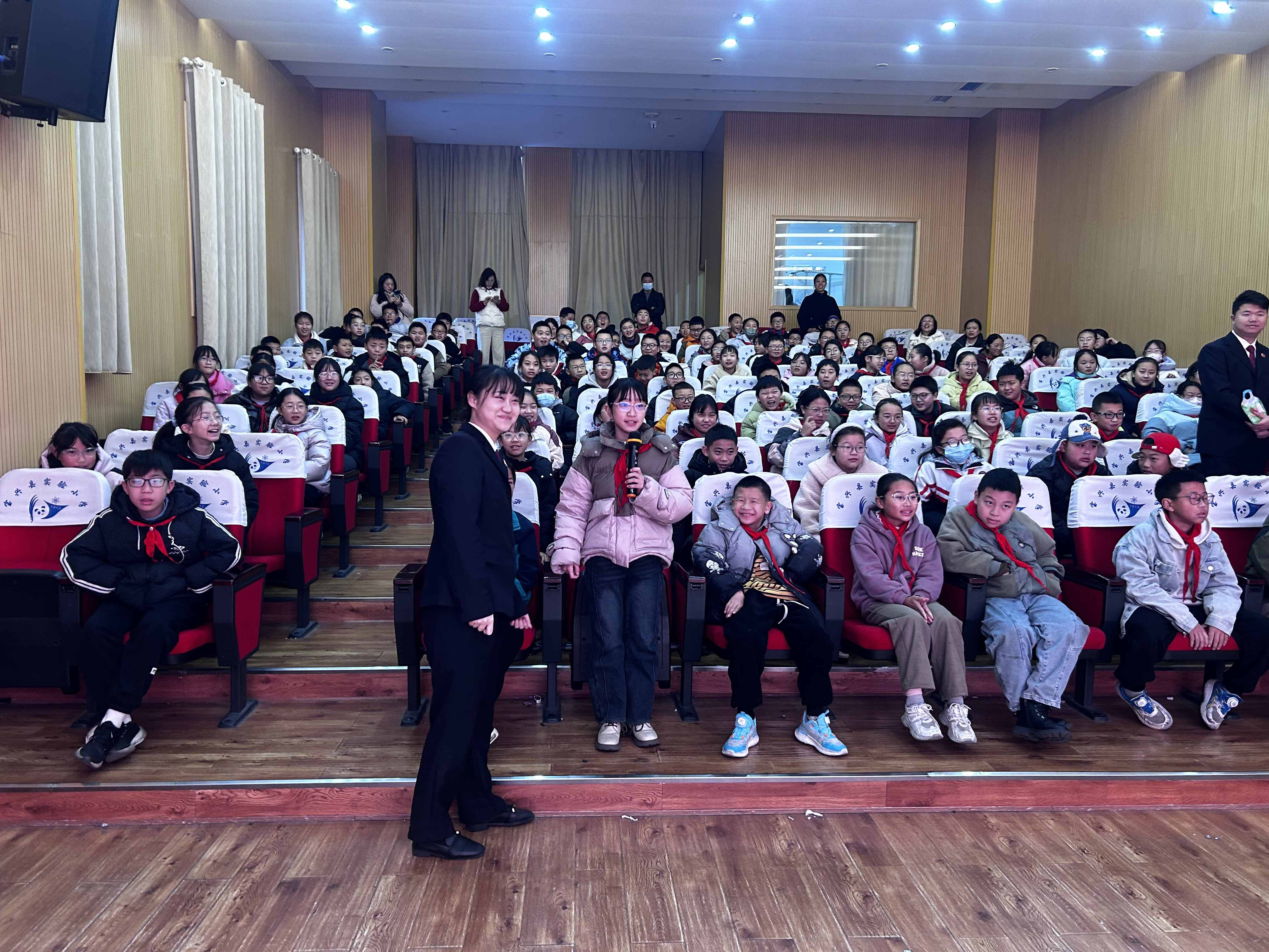 为进一步加强未成年人法治教育,12月5日,四川省雅安市宝兴县人民检察院联合县教育局走进宝兴县实验小学,以“五彩相伴、护未成长”为主题,开展了一场“沉浸式”法治宣传活动。活动通过播放法治宣传视频、有奖趣味答题等形式,让学生在轻松的氛围中学习法律知识,筑牢法治意识。
