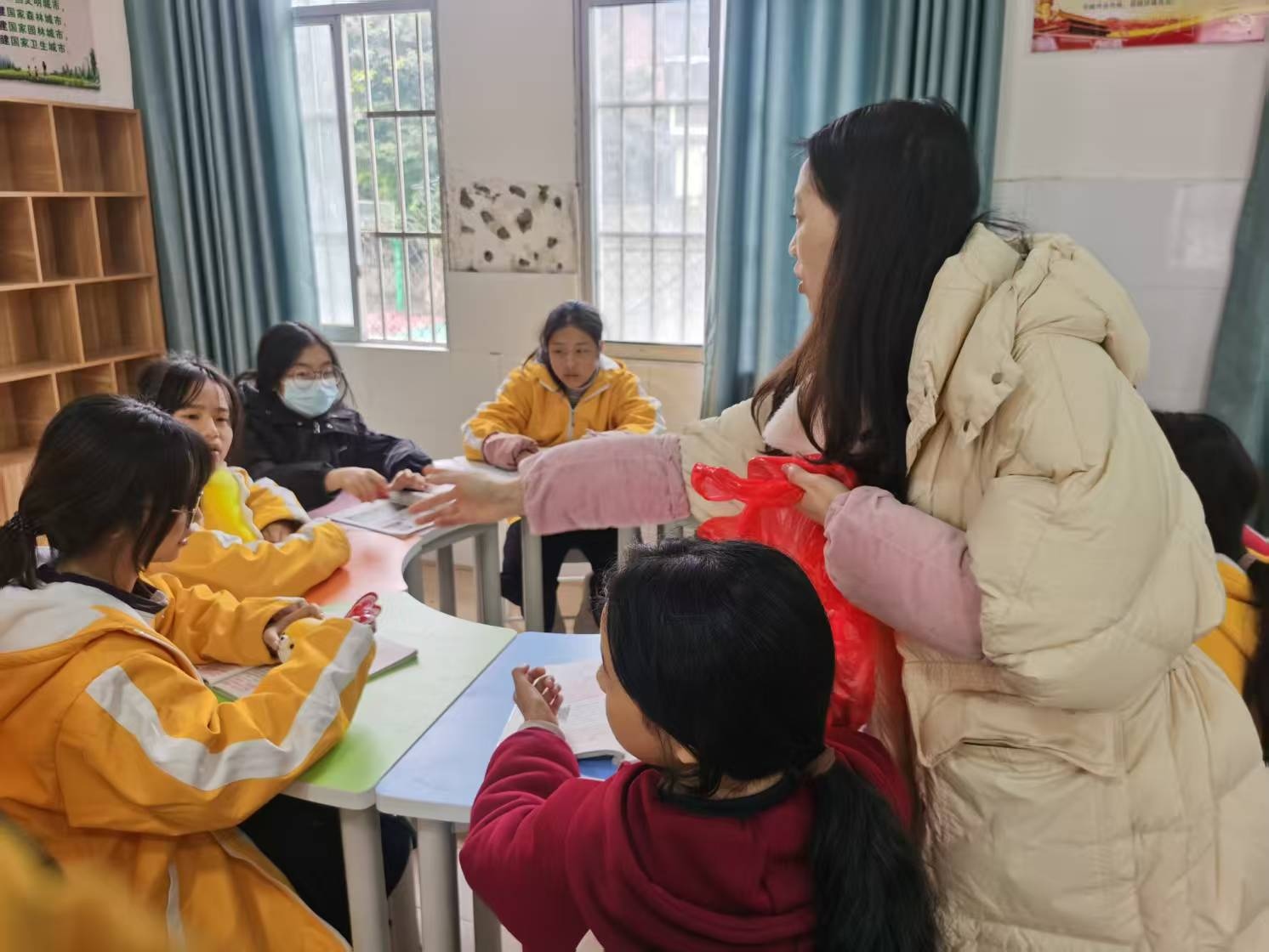 活动以趣味游戏为核心载体,还设置了糖果作为通关奖励,迅速调动起学生的参与热情。开场的“情绪蹲”游戏中,学生们认领“开心”“焦虑”“委屈”等情绪身份,伴随整齐口号完成互动挑战,率先完成的小组能收获彩色糖果,现场瞬间充满欢声笑语;随后的“情绪盲盒”环节,大家将烦恼匿名写进纸条投入盲盒,再随机抽取为同伴出谋划策,凡是给出实用疏导建议的同学,都能得到老师送上的糖果奖励,这一环节让学生在轻松倾诉与互助中,学会换位思考和情绪疏解。