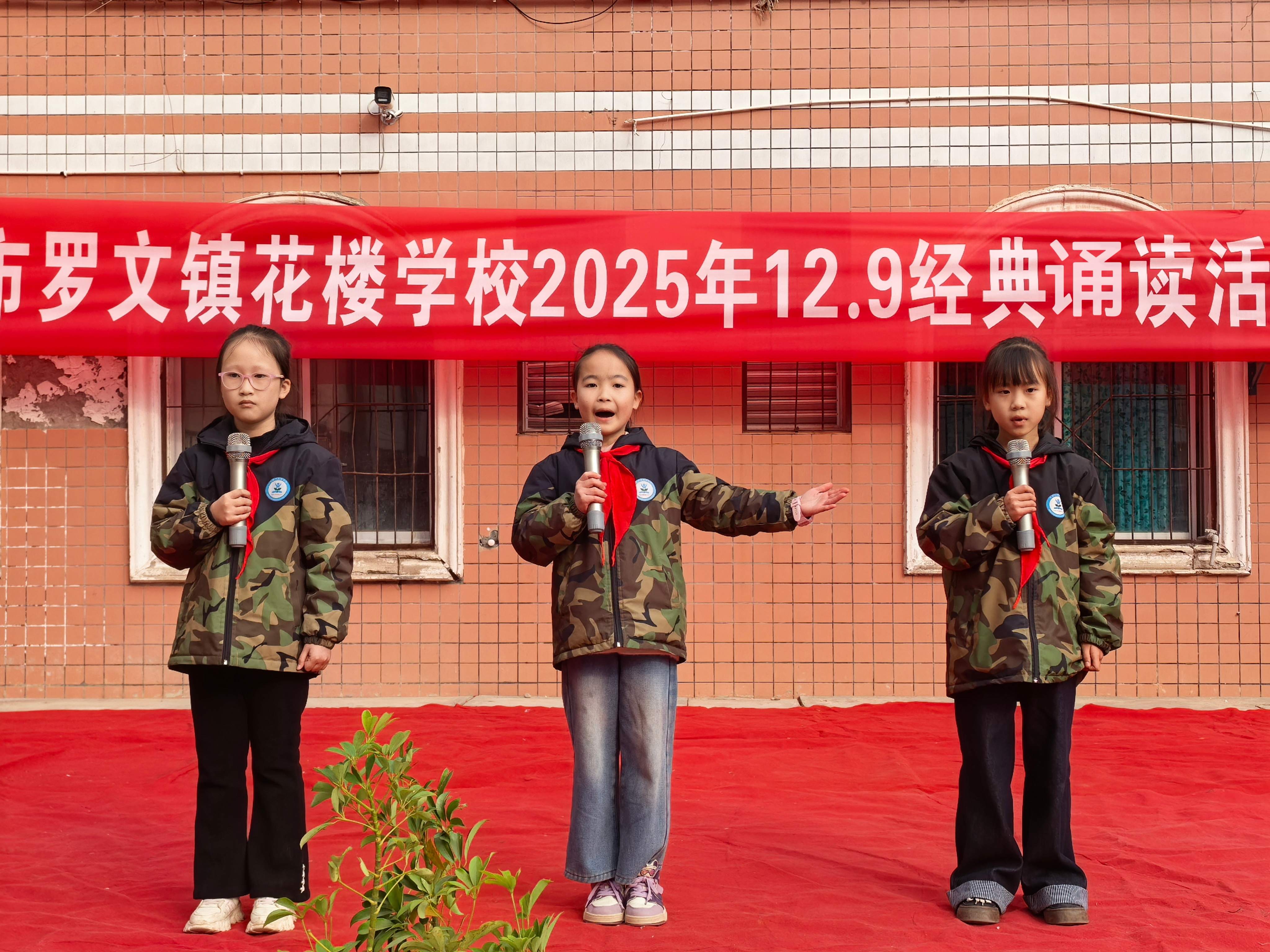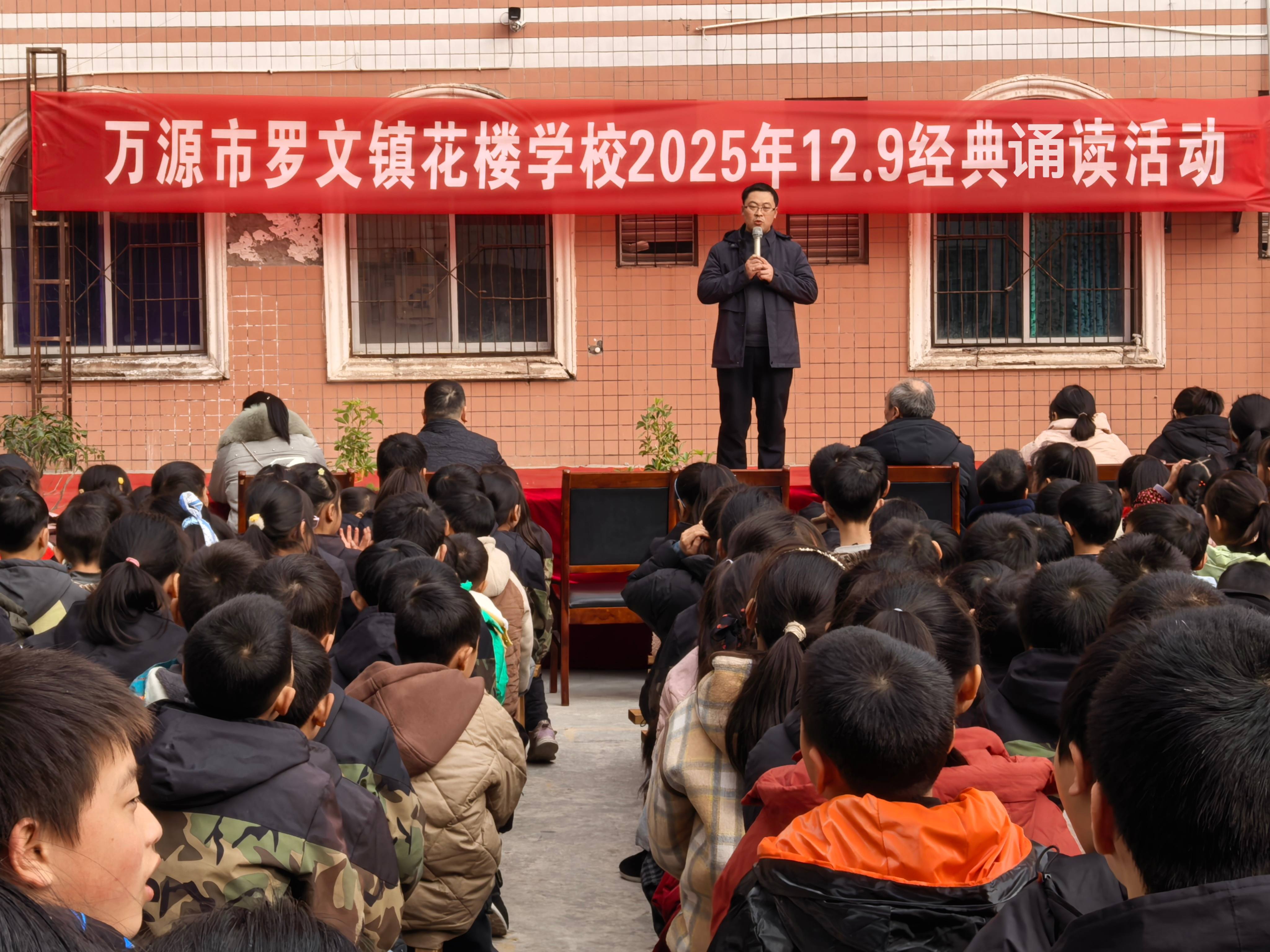为纪念“一二·九”学生爱国运动,弘扬爱国主义精神,12月8日,万源市罗文镇花楼学校举办“诵中华经典 承爱国基因”经典诵读活动,全体师生参与。