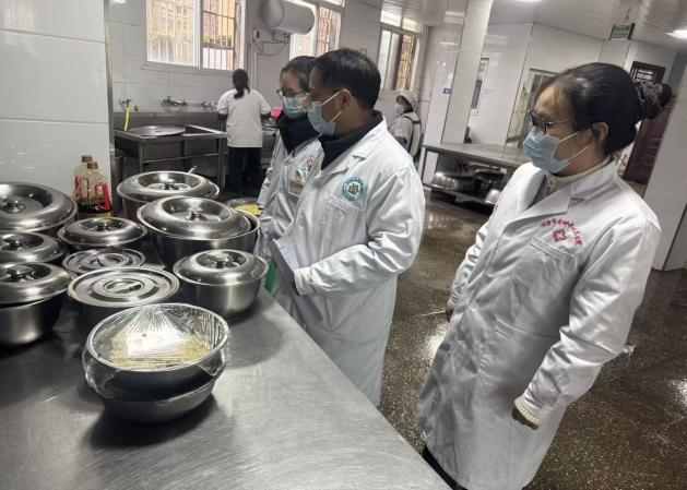 讲座结束后,张科长一行4人与学校后勤、德育部门工作人员一同深入学校食堂,重点检查了食材储存、餐具消毒、食品留样、从业人员健康管理等关键环节,对食堂卫生管理的规范流程予以肯定,同时就细节优化提出指导性建议。