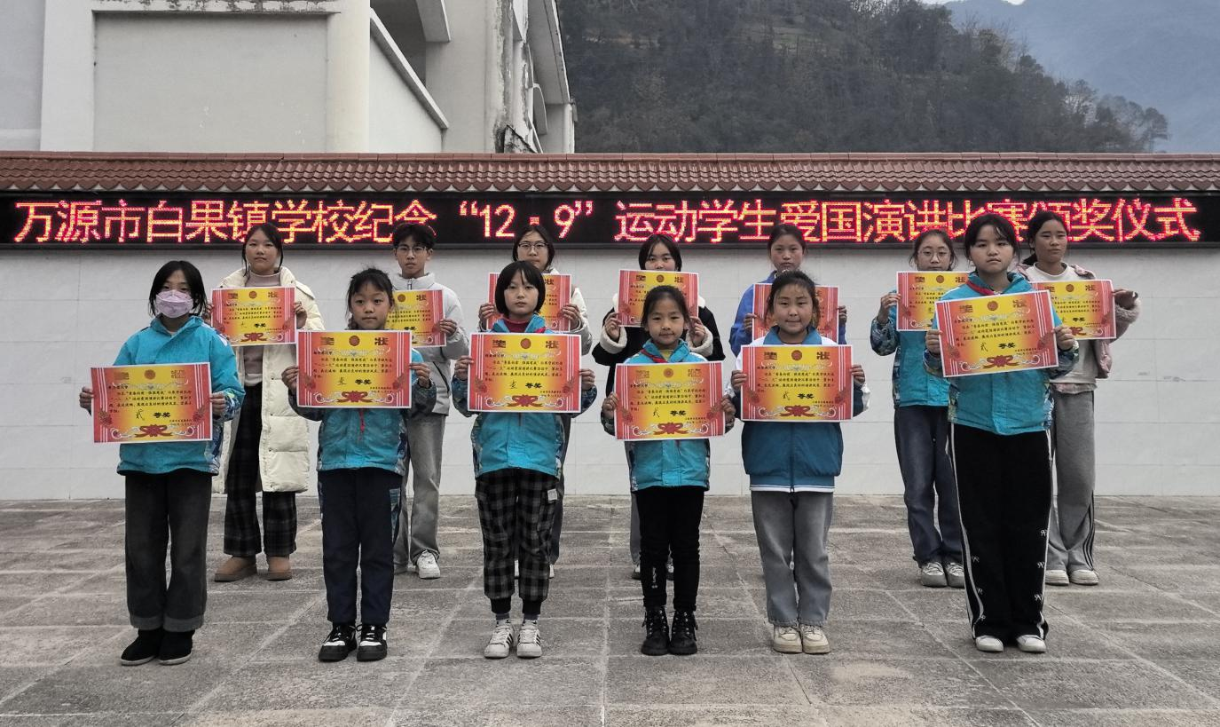 为弘扬爱国主义精神,铭记光辉历史,12月9日,万源市白果镇学校成功举办纪念“一二·九”运动学生爱国演讲比赛。来自三至九年级的十余名学子齐聚一堂,以青春之声抒发报国之志,展现新时代少年的精神风貌。