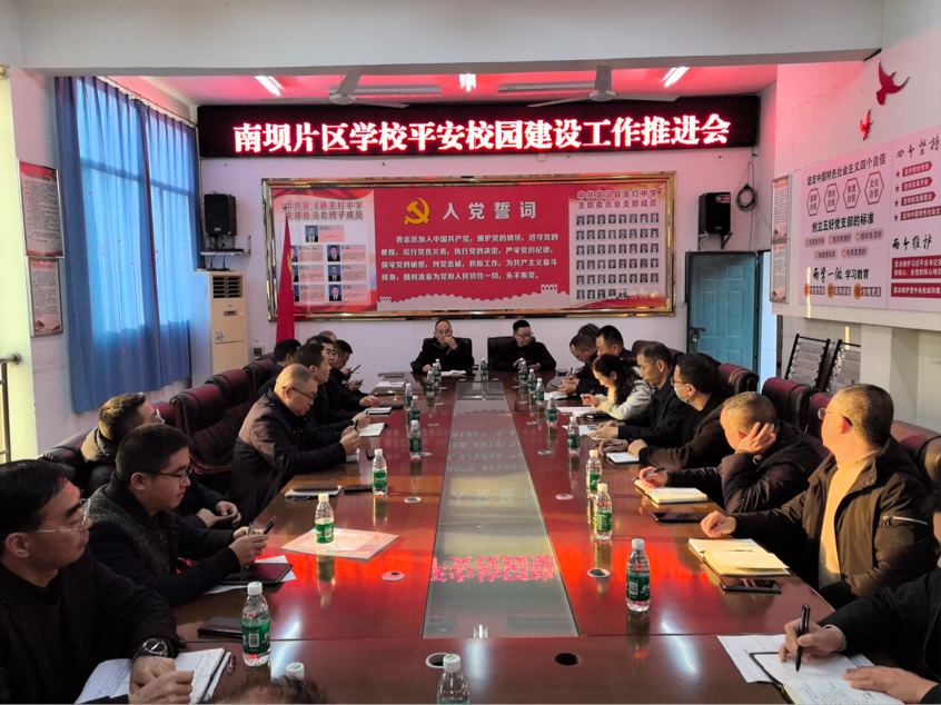 为深入落实11月14日宣汉县平安校园建设专项行动会议精神,推动南坝片区学校平安校园建设工作走深走实,切实筑牢校园安全防线,保障片区教育事业和谐健康发展,2025年12月10日下午,宣汉县南坝片区平安校园建设工作推进会在圣灯中学如期举行。本次会议由成作主持,南坝片区各公办学校书记、校园长及南坝教育督导室责任督学齐聚一堂,共商校园平安建设大计。