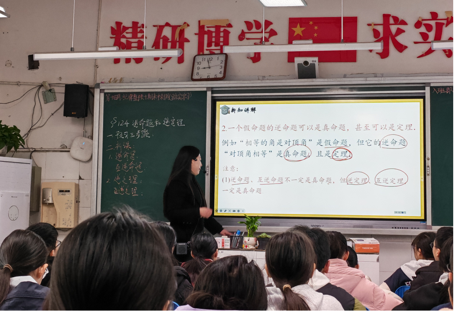 为提升期末复习效率,初二数学组于12月8日上午第二节课开展。活动中,袁腾华老师以《命题与逆定理》为题呈现了一节公开课。课堂通过典型实例阐释抽象逻辑关系,融入概念辨析与实例验证,并有机衔接期末高频考点,有效突破了教学难点。