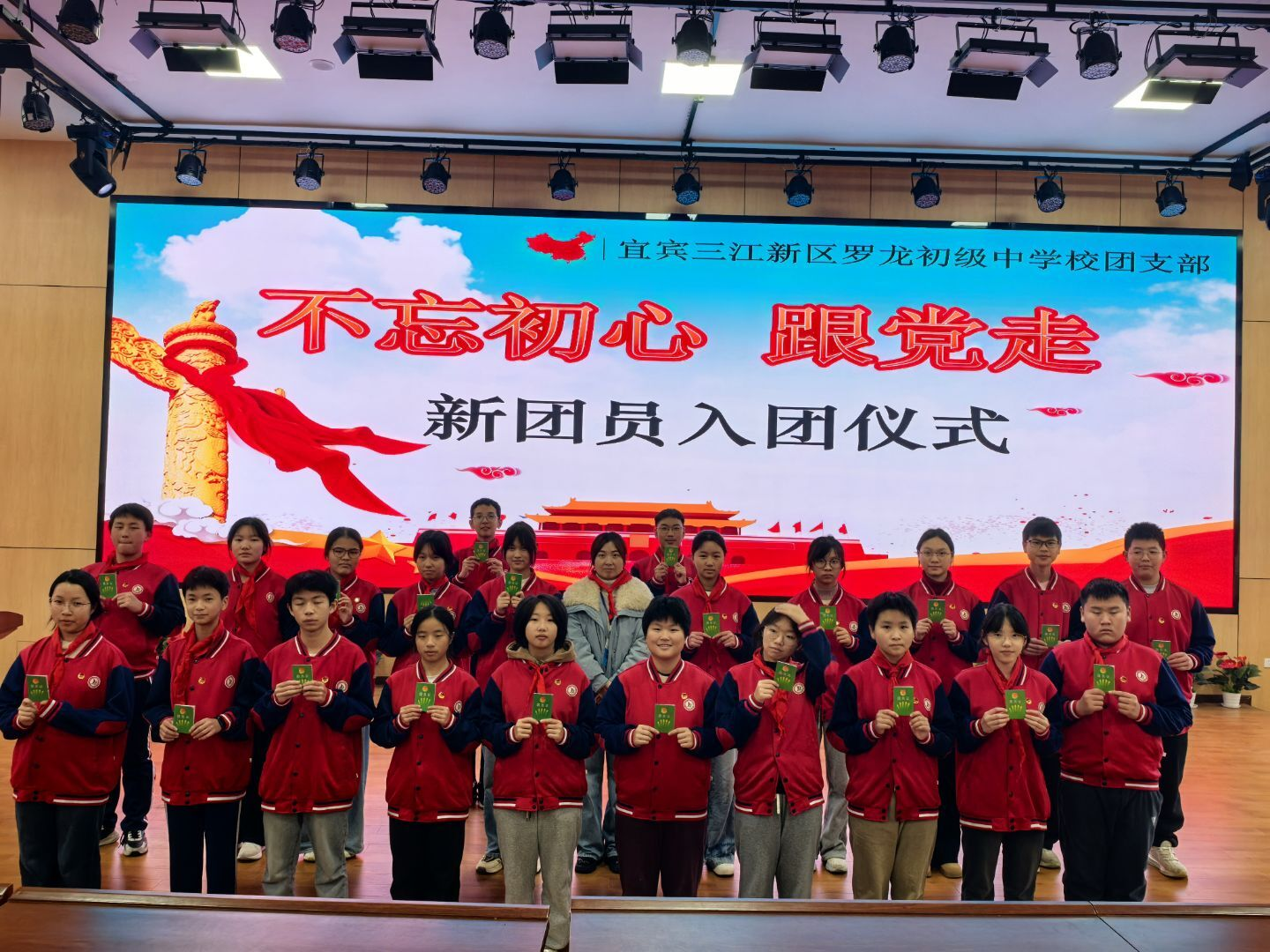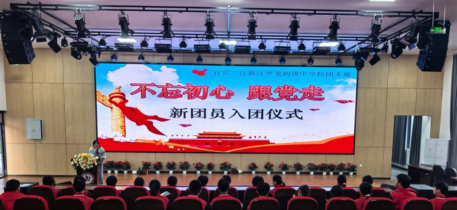 “党旗所指就是团旗所向,青年所行当随时代所趋。”为传承红色基因,凝聚青春力量,引导青年学子坚定理想信念、勇担时代使命,12月9日,宜宾三江新区罗龙初级中学校在致真堂隆重举行2025年秋期新团员入团仪式。此次仪式由学校党组织统筹指导,团总支具体组织实施,21名新团员及全体老团员齐聚一堂,共赴这场青春的庄严邀约。