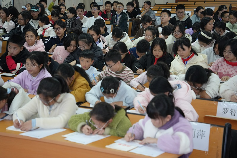 随后,在研支团成员组织下,同学们端坐于报告厅内,开始了与哈工大未来技术学院哥哥姐姐们的首次通信。他们用略显稚嫩但无比真诚的笔触,在信纸上尽情挥洒:有的描绘了自己的校园生活与家乡风物,有的倾诉了成长中的小小烦恼,更多的是对大学生活的好奇、对科学知识的向往以及对未来人生的朦胧憧憬。笔尖沙沙作响,报告厅内洋溢着专注而温暖的气氛。